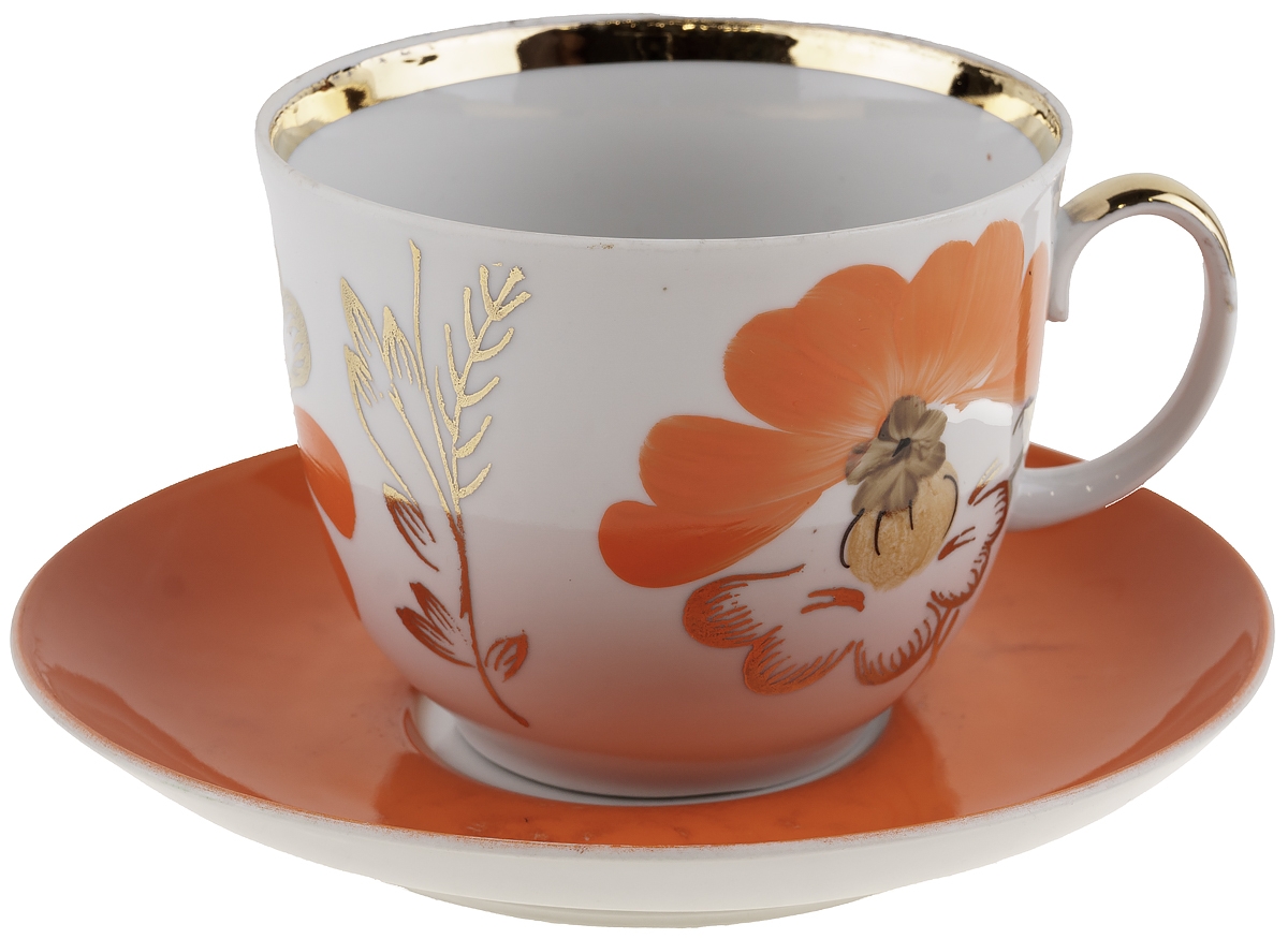 Чайная пара "Маки", фарфор, винтаж, Барановский завод (Барановка), СССР, 1970-е гг (с нюансом)