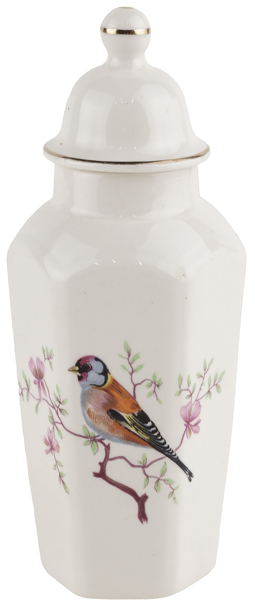 Ваза с крышкой "Птица на ветке", баночка, Высота 12 см, Английский фарфор, Royal Worcester, Великобритания, середина 20 века