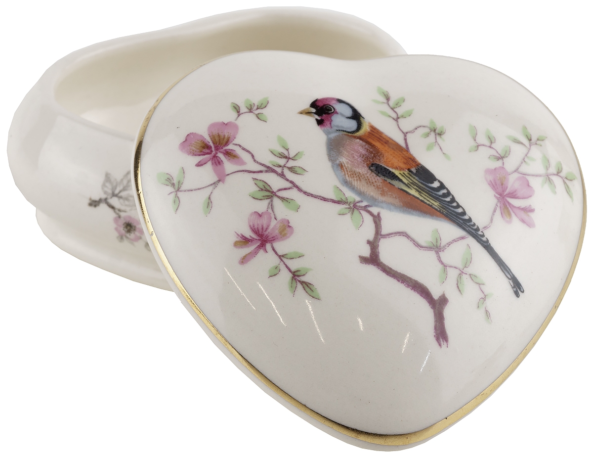 Винтажная шкатулка для украшений и мелочей в форме сердца "Птица на ветке" из серии "Palissy".