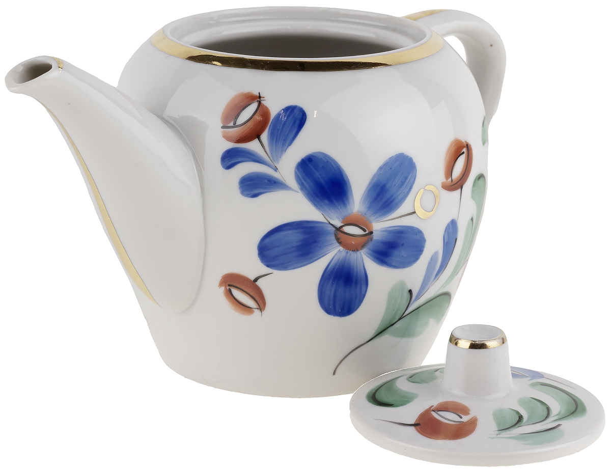 Чайник заварочный "Синие цветы", Фарфор, винтаж, Вербилки, СССР, 1954-1965 гг.