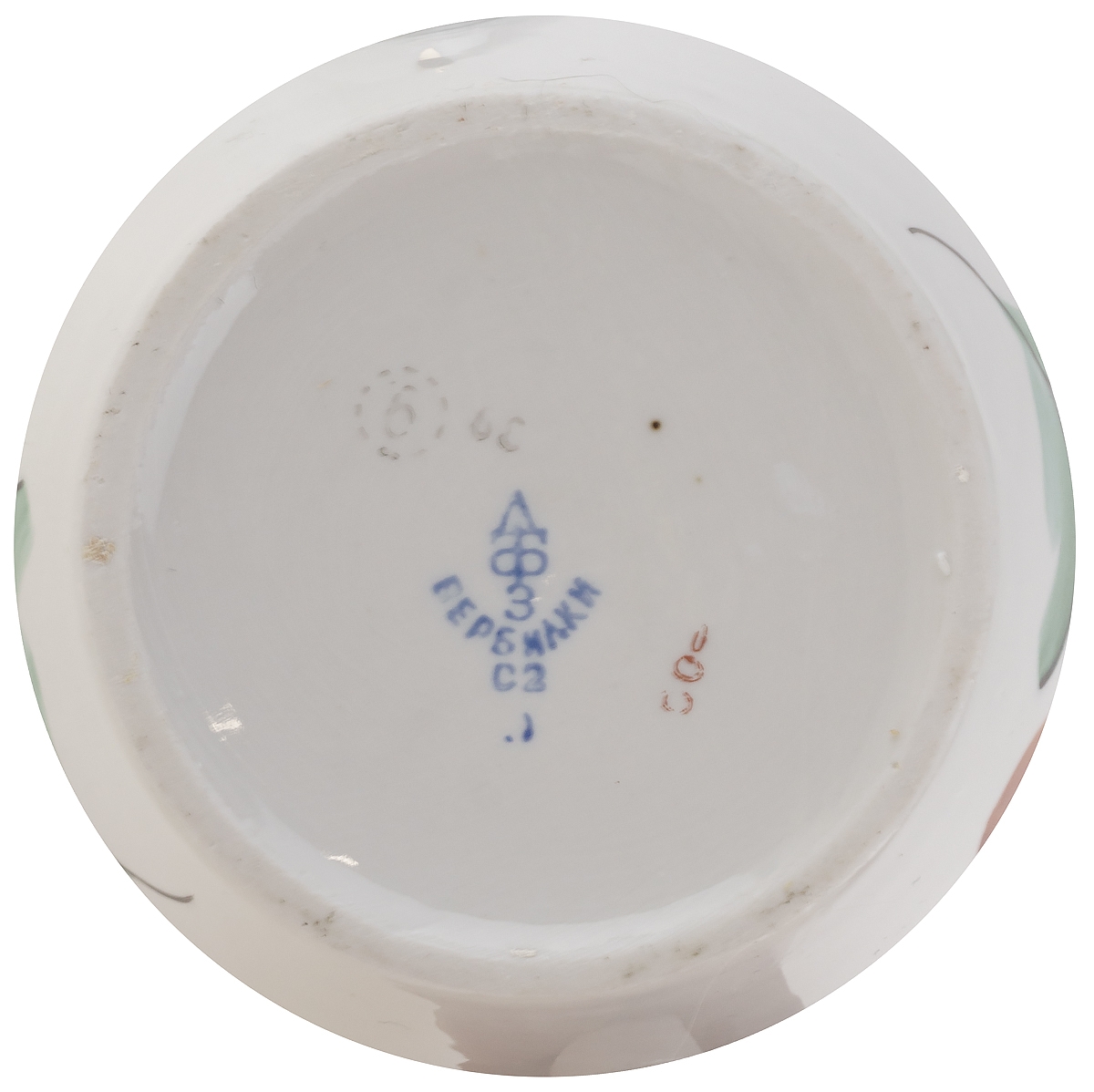 Маркировка: надглазурное клеймо Дмитровского фарфорового завода (Вербилки).