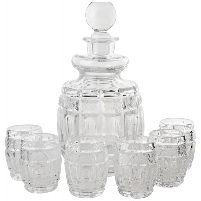 Роскошный винтажный графин и шесть стопок с рельефным декором для водки, вина.