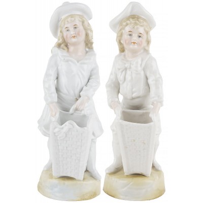 Статуэтки антикварные спичечницы, подставки для ручек "Дама и кавалер". Высота 21,5 см, фарфор,Германия, начало ХХ века