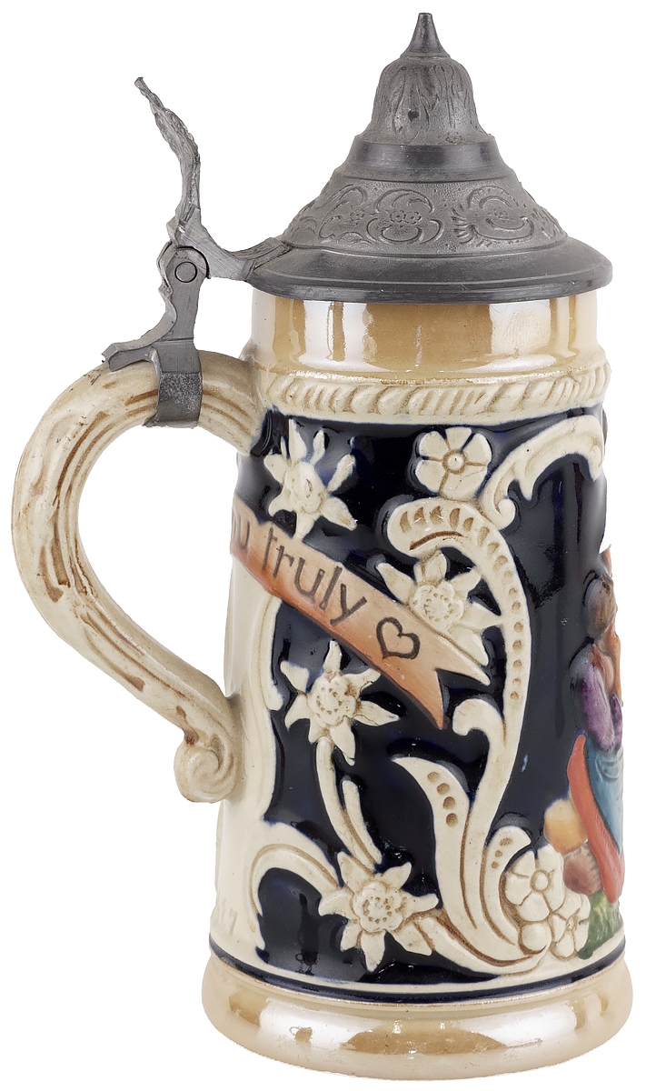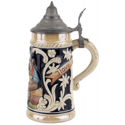 Коллекционная пивная кружка "Я действительно тебя люблю", с крышкой, богато украшена рельефом. Отличный подарок коллекционеру пивных кружек