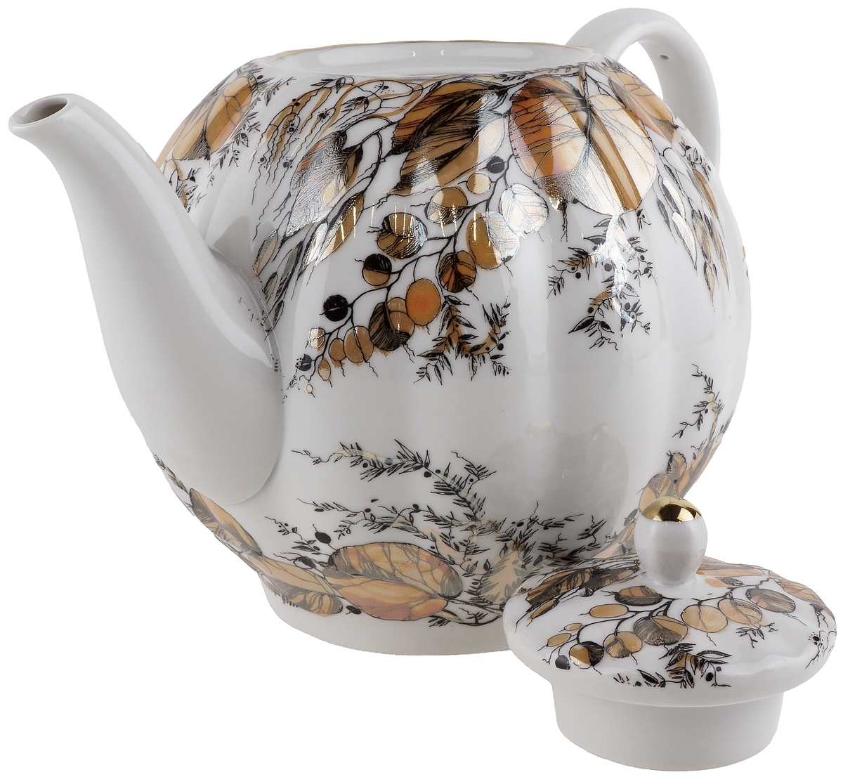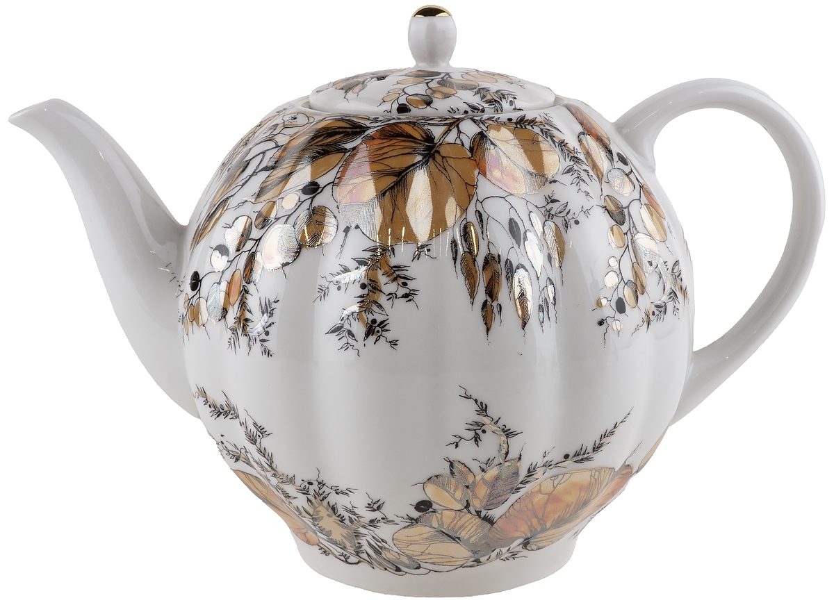 Чайник заварочный большой "Золотая осень". Фарфор, винтаж, ЛФЗ, СССР, вторая половина 20 века
