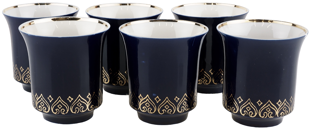 Набор стаканов "Ночка", 6 шт, Фарфор, винтаж, кобальтовое покрытие. Бронницы, СССР, вторая половина 20 века (с повреждениями)