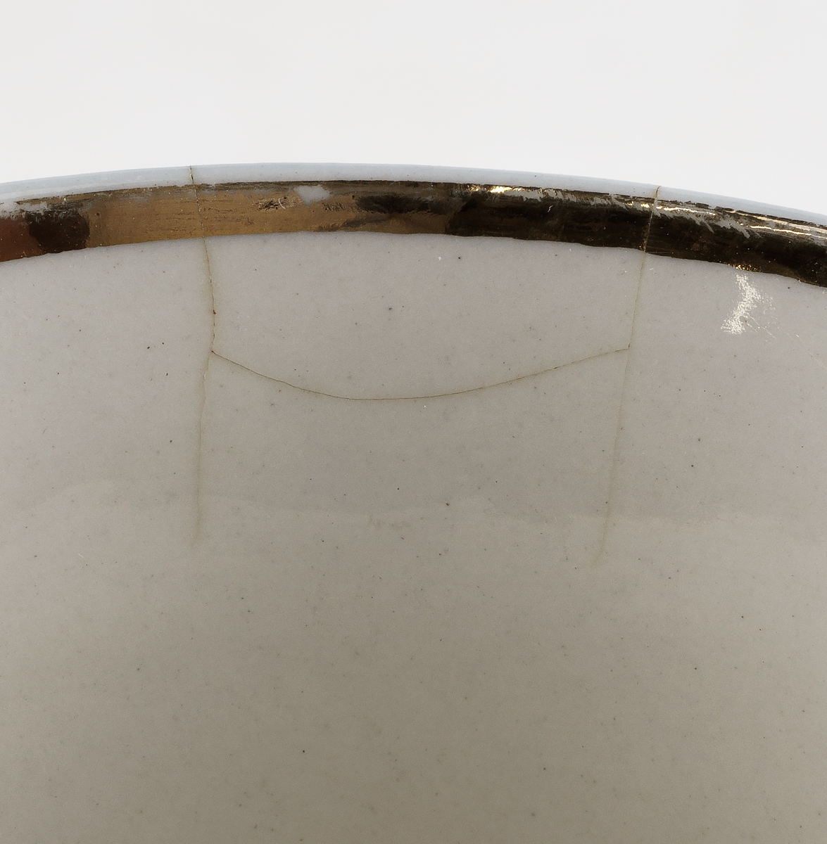 Сохранность удовлетворительная, на 2-х стаканах есть волосяные трещины, на 2-х стаканов небольшие сколы по краю, нюансы глазуровки.