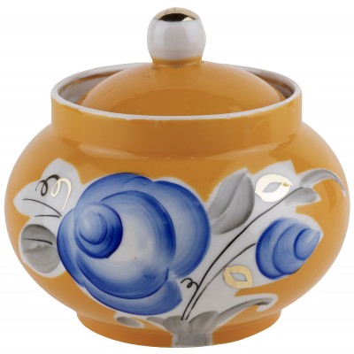 Роскошная яркая винтажная сахарница "Синяя роза на оранжевом"".