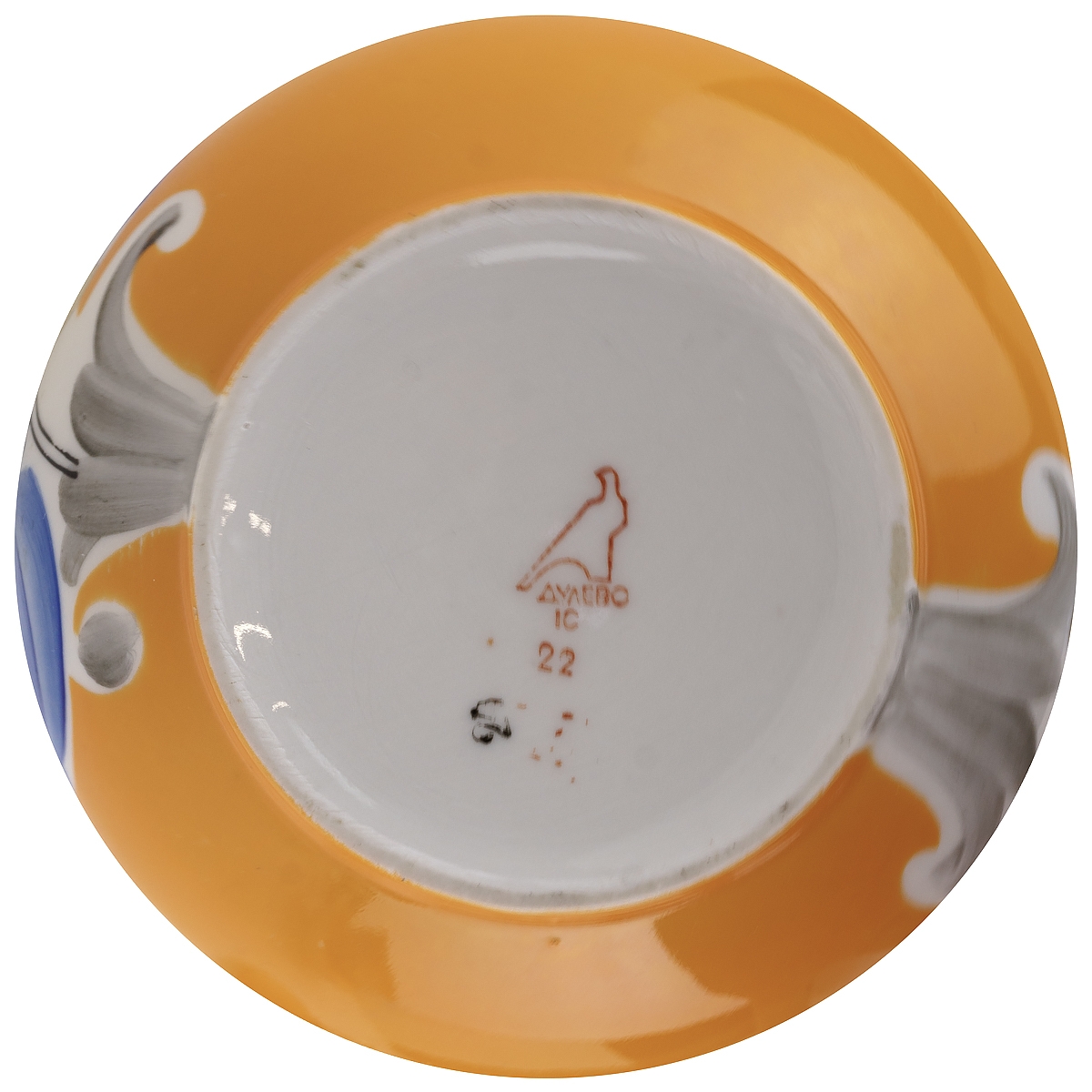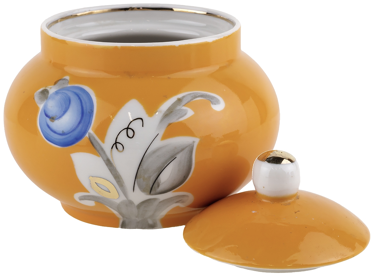 Сахарница "Синяя роза на оранжевом", фарфор, винтаж, агашки, Дулево, СССР, вторая половина 20 века