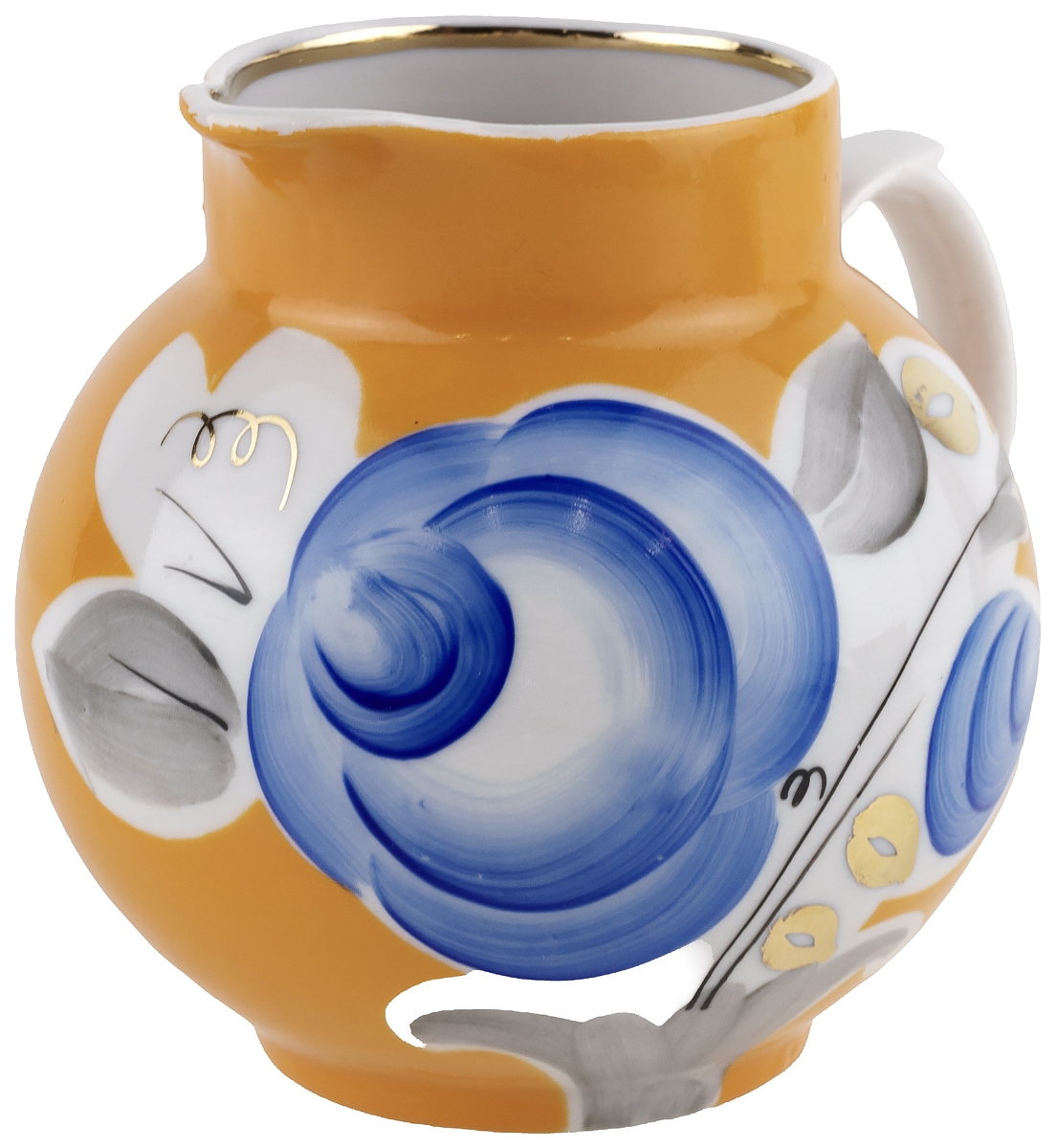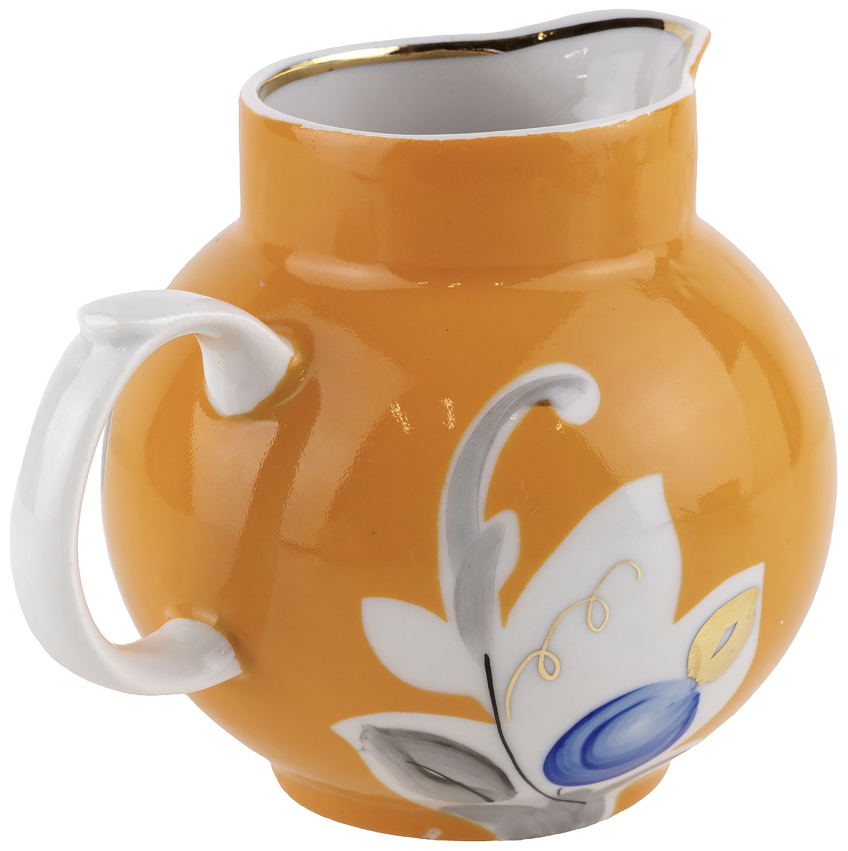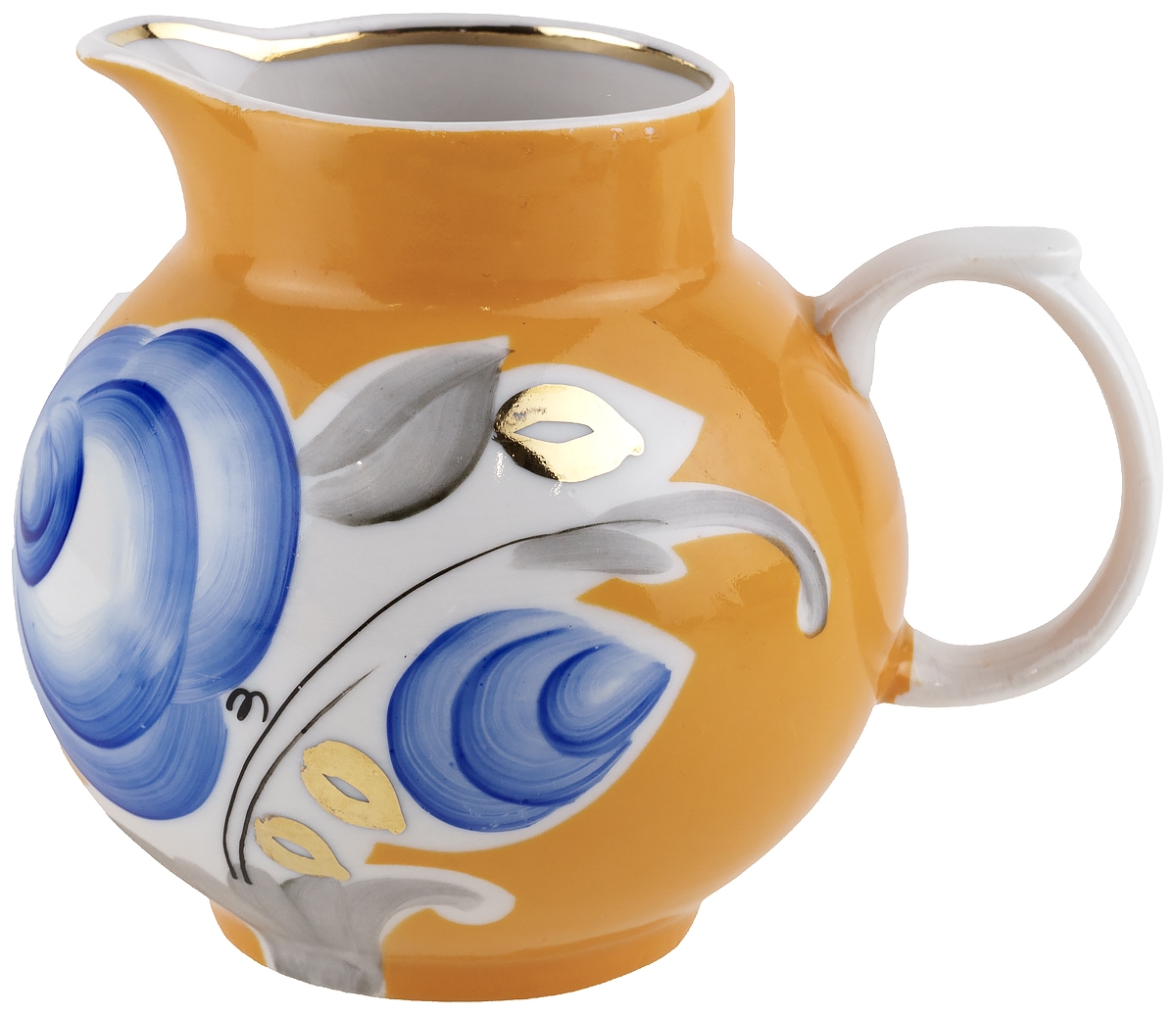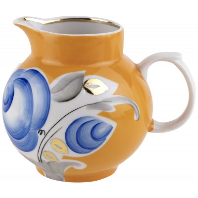 Молочник "Синяя роза на оранжевом", фарфор, винтаж, агашки, Дулево, СССР, вторая половина 20 века