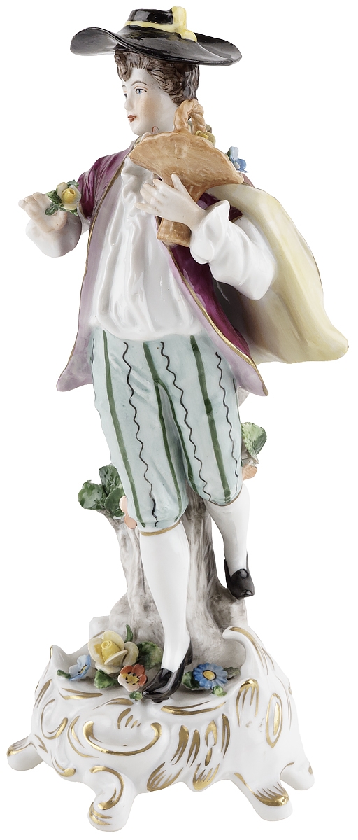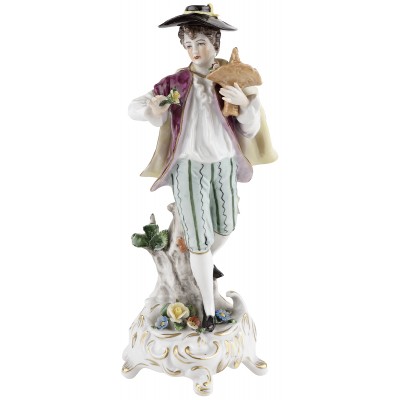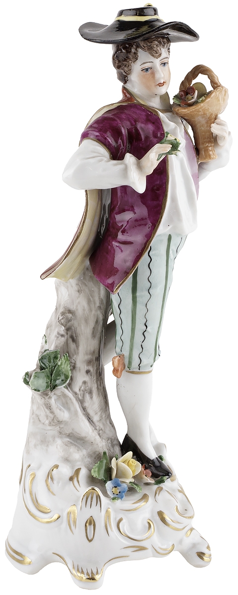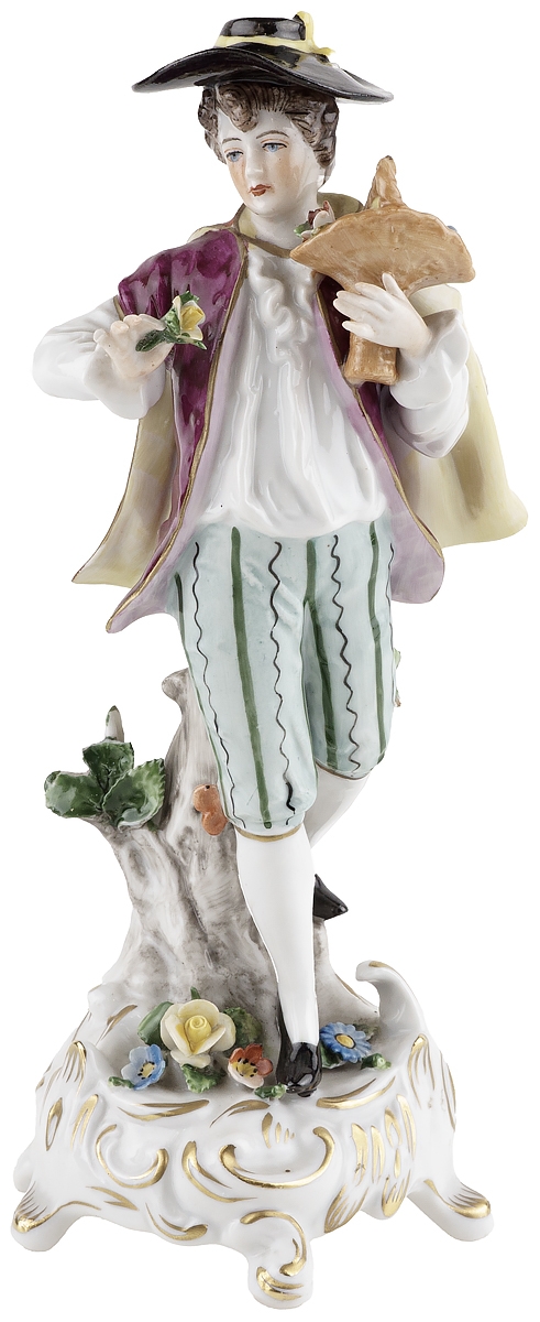 Статуэтка антикварная "Кавалер с корзиной цветов", Немецкий фарфор, Высота 18,5 см, Sitzendorf, Германия, начало 20 века