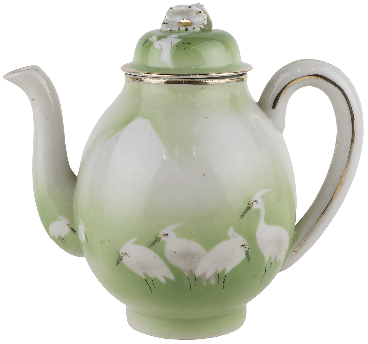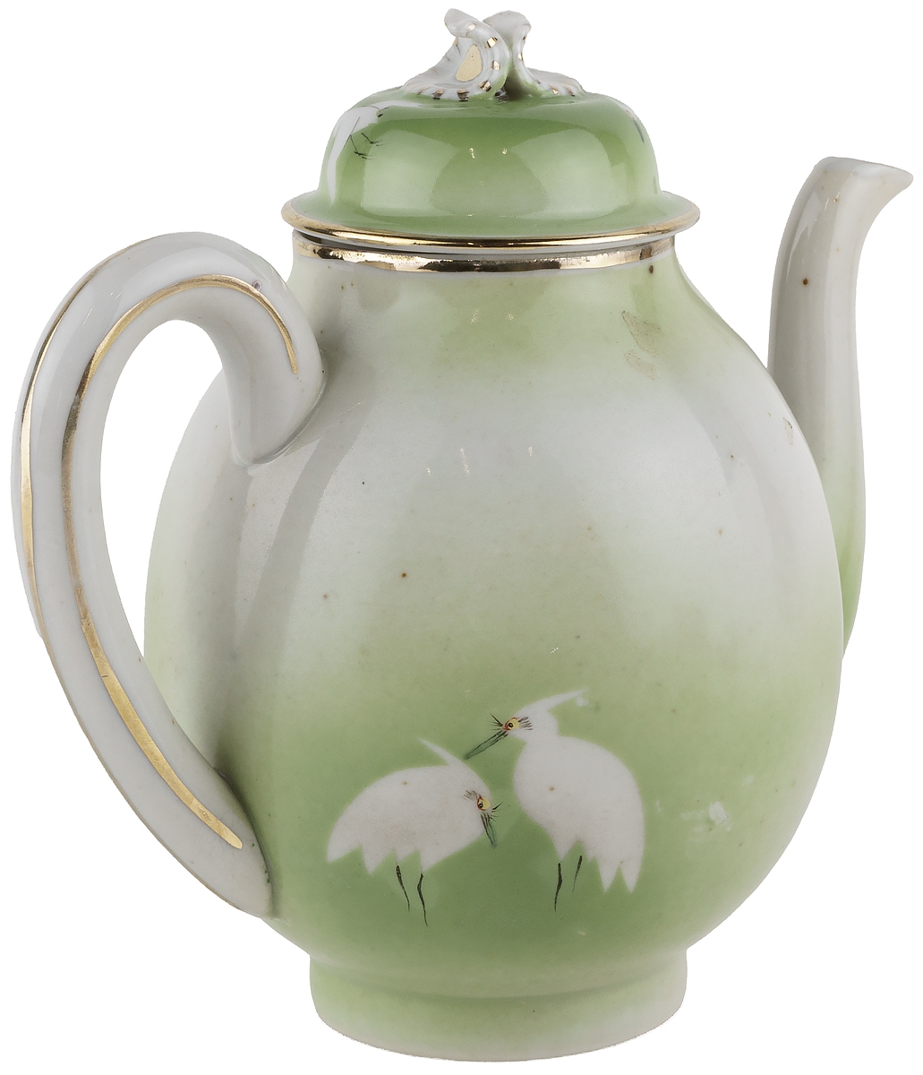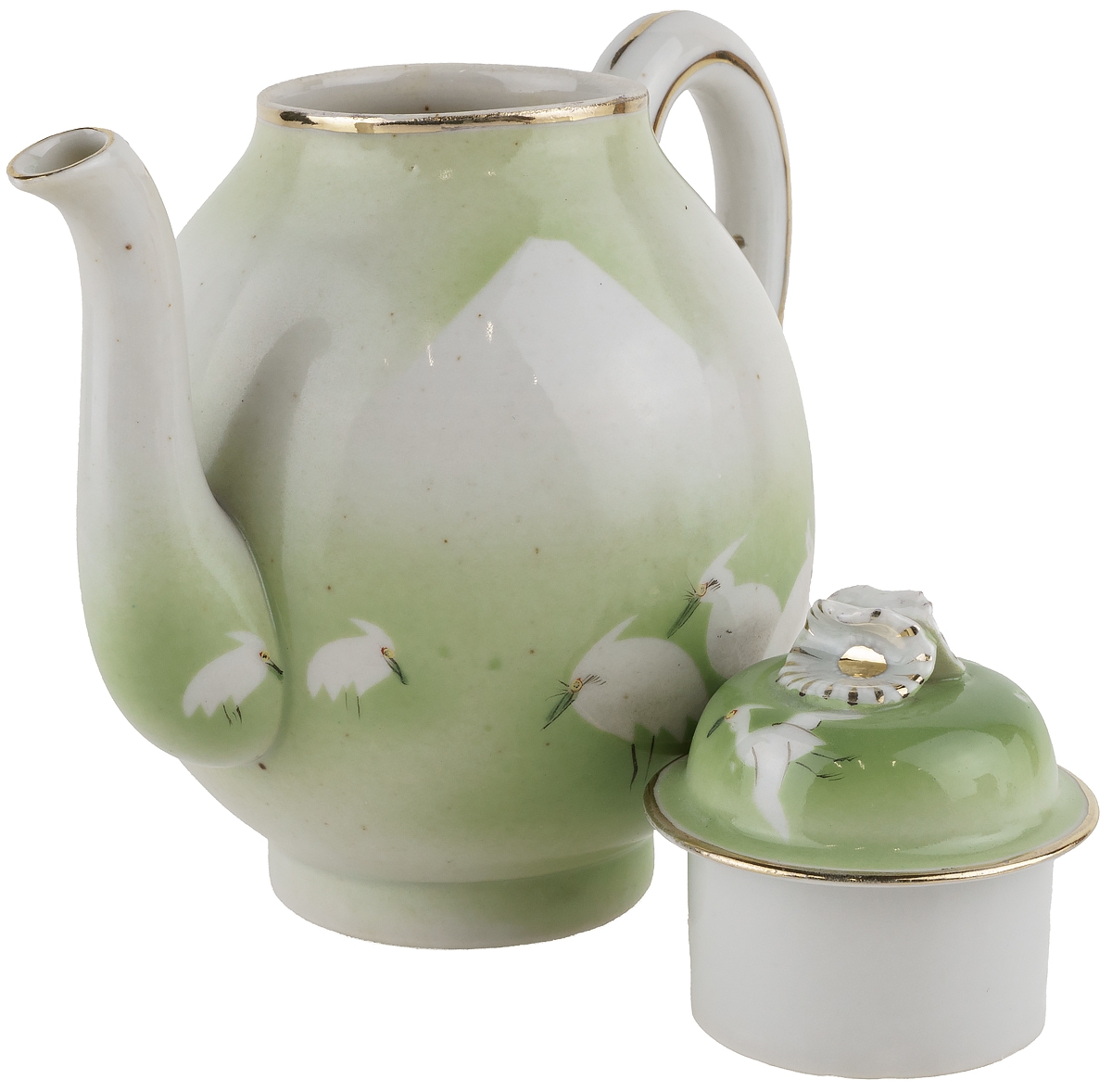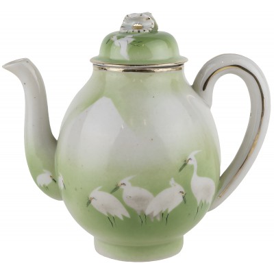 Чайник антикварный заварочный "Японские цапли". Фарфор, ручная роспись. Япония, винтаж, середина 20 века (нюанс)