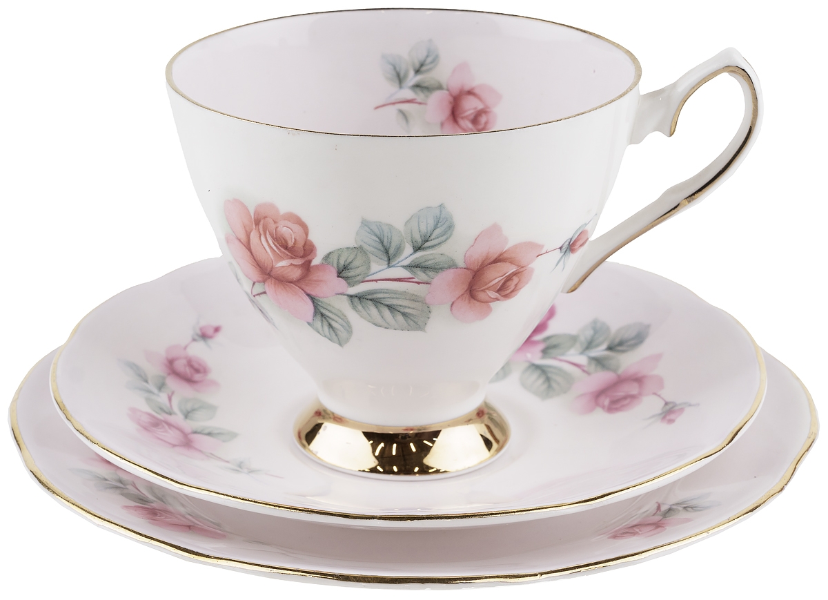 Великолепное чайное трио изящной формы "Роза Пинк Роуз".