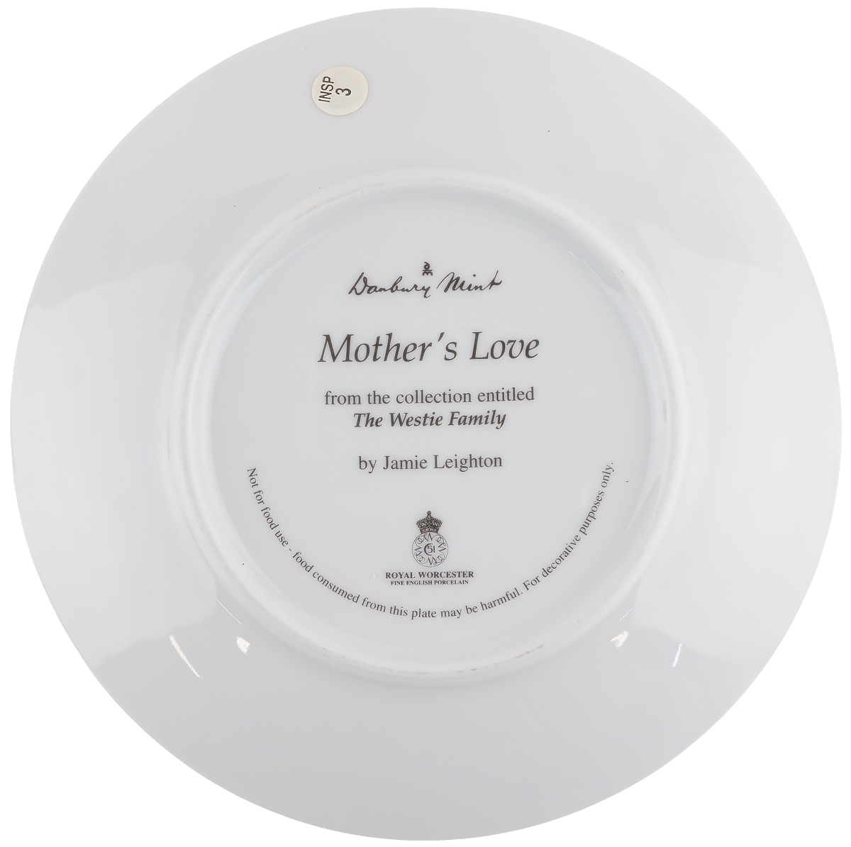 Маркировка: подглазурное клеймо черного цвета "Danbury Mint" для "Royal Worcester".