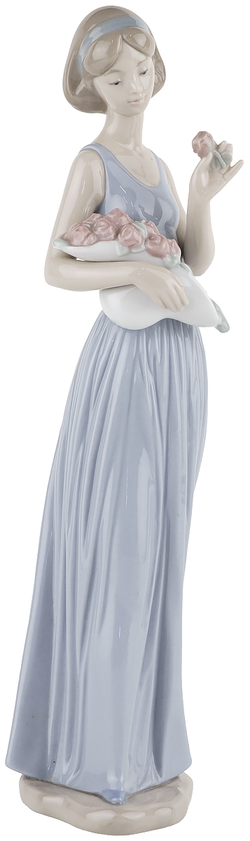 Статуэтка винтажная "Девушка с букетом роз", Фарфор, винтаж, высота 32 см, Nao для Lladro, Испания, 2000 год