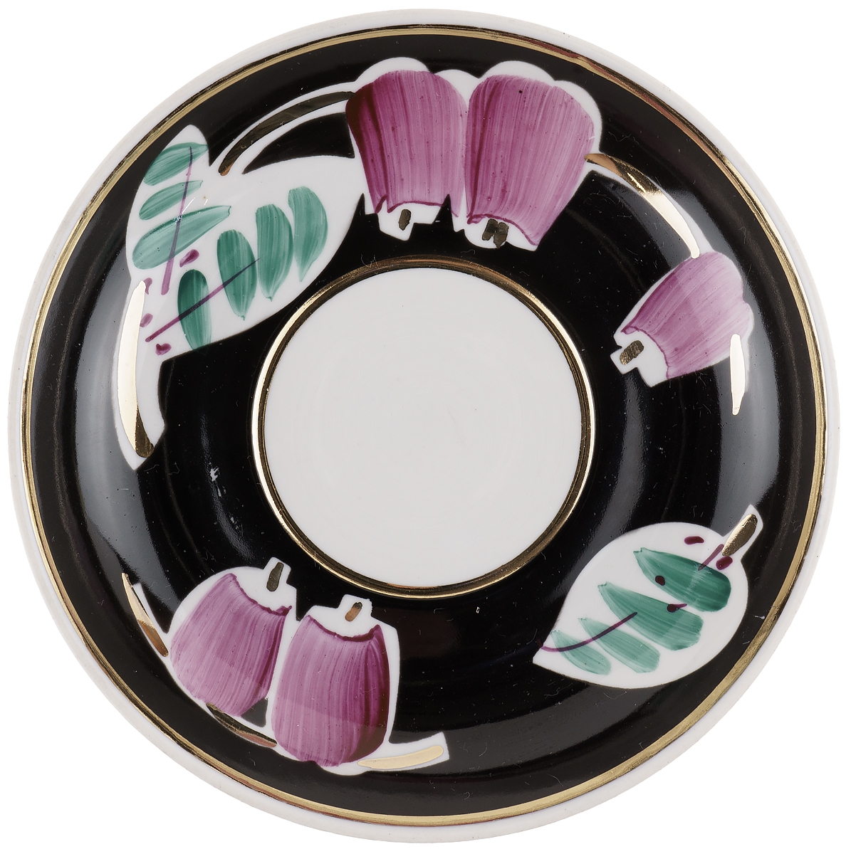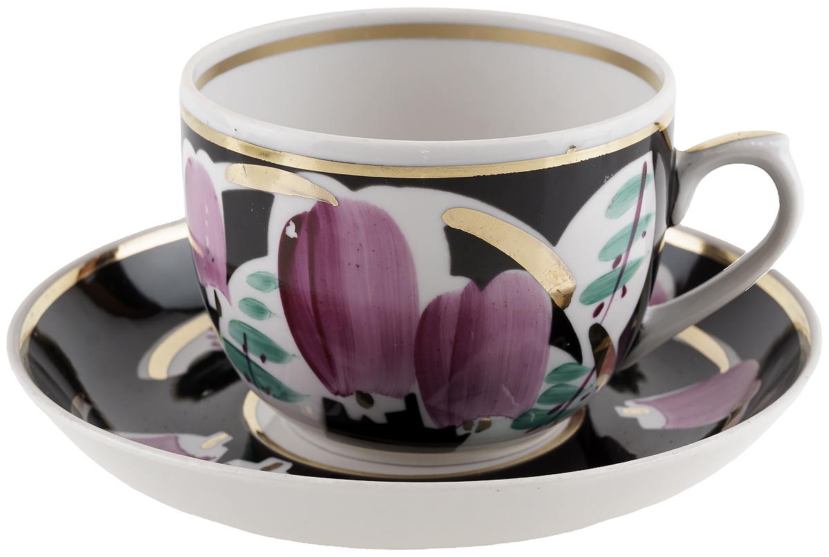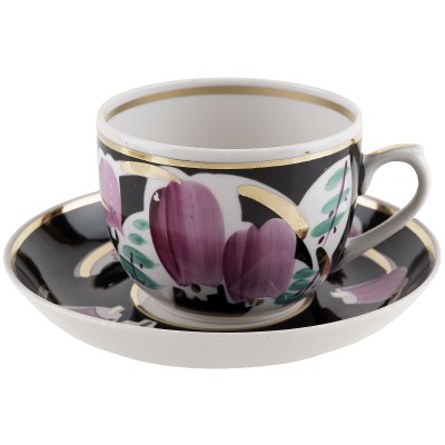 Чайная пара "Колокольчики на черном", Фарфор, винтаж, агашки, Вербилки, СССР, 1965-1991 гг.
