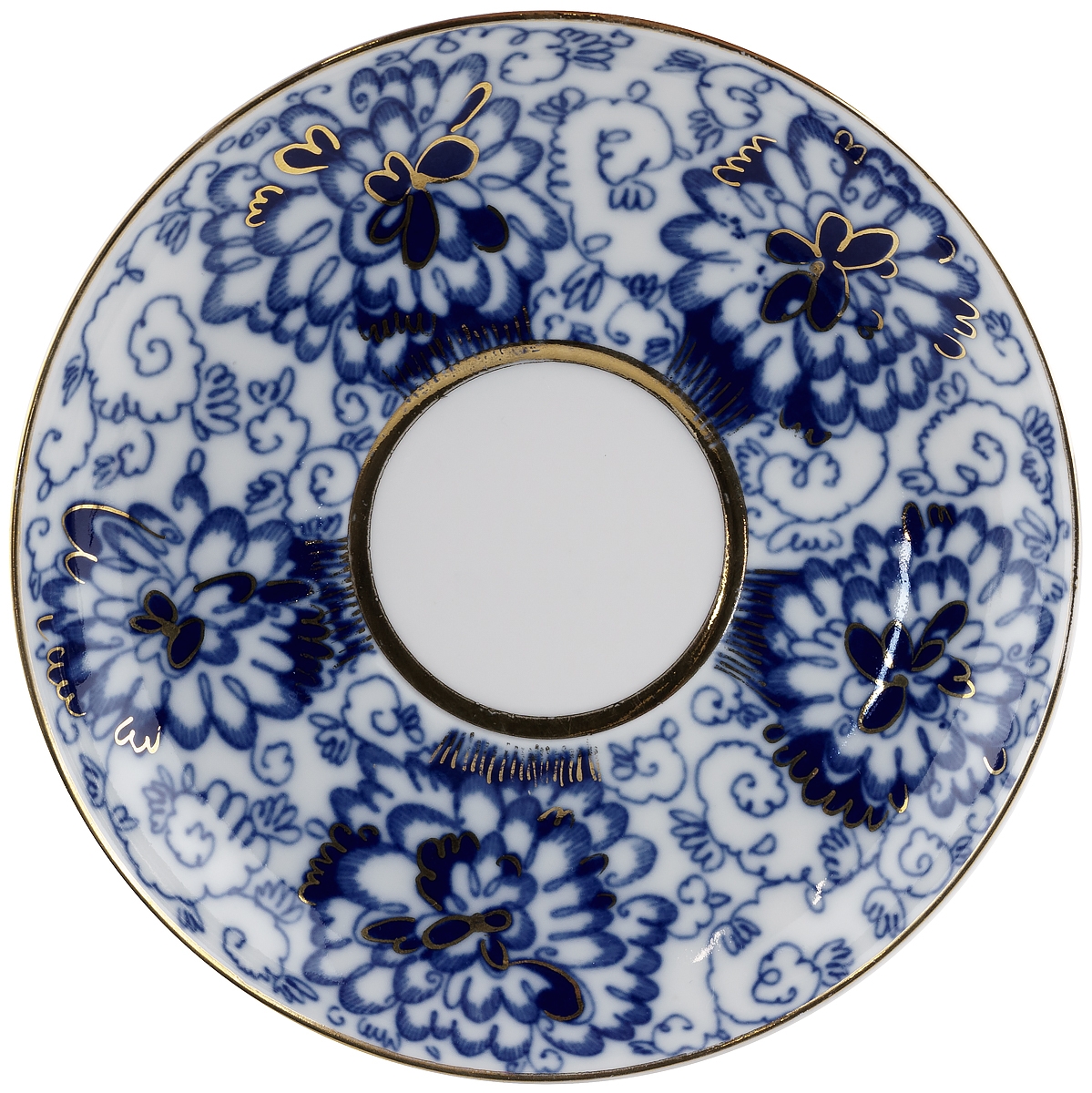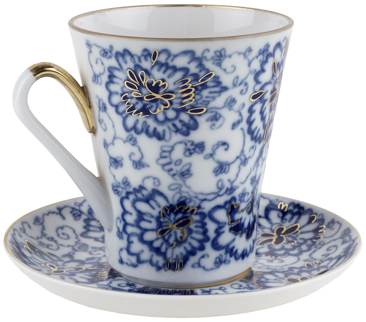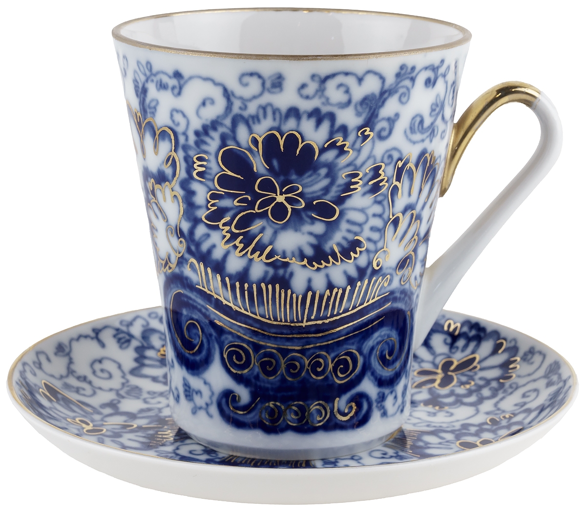 Бокал чайный с блюдцем "Синие цветы", фарфор, винтаж, ЛФЗ, СССР, вторая половина 20 века