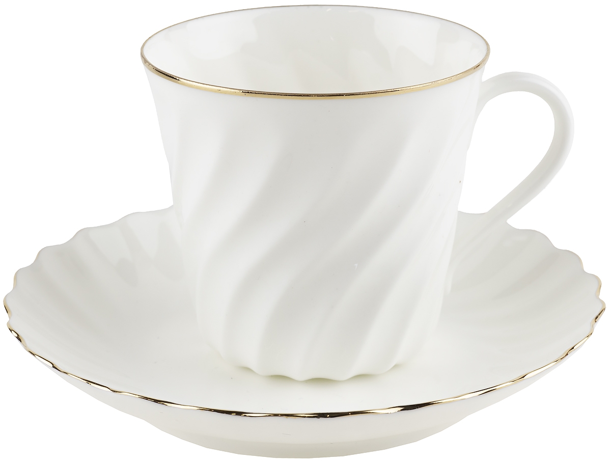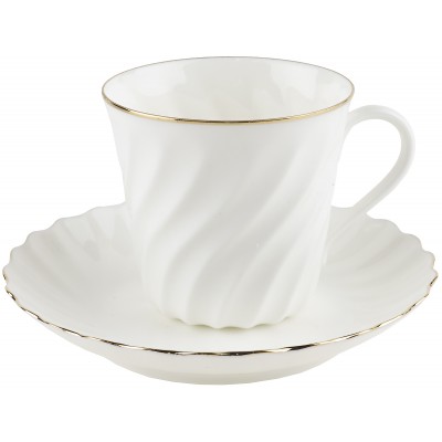 Очаровательная чайная пара "Белоснежка" из рифленого костяного фарфора. Чашка небольшого объема, может использоваться для чая или для кофе.