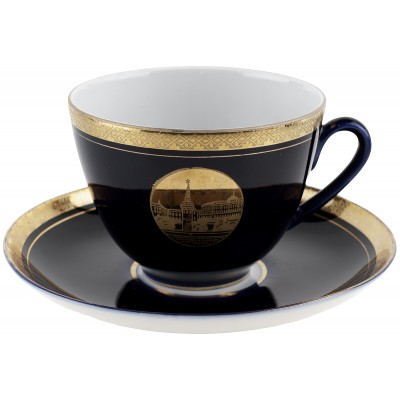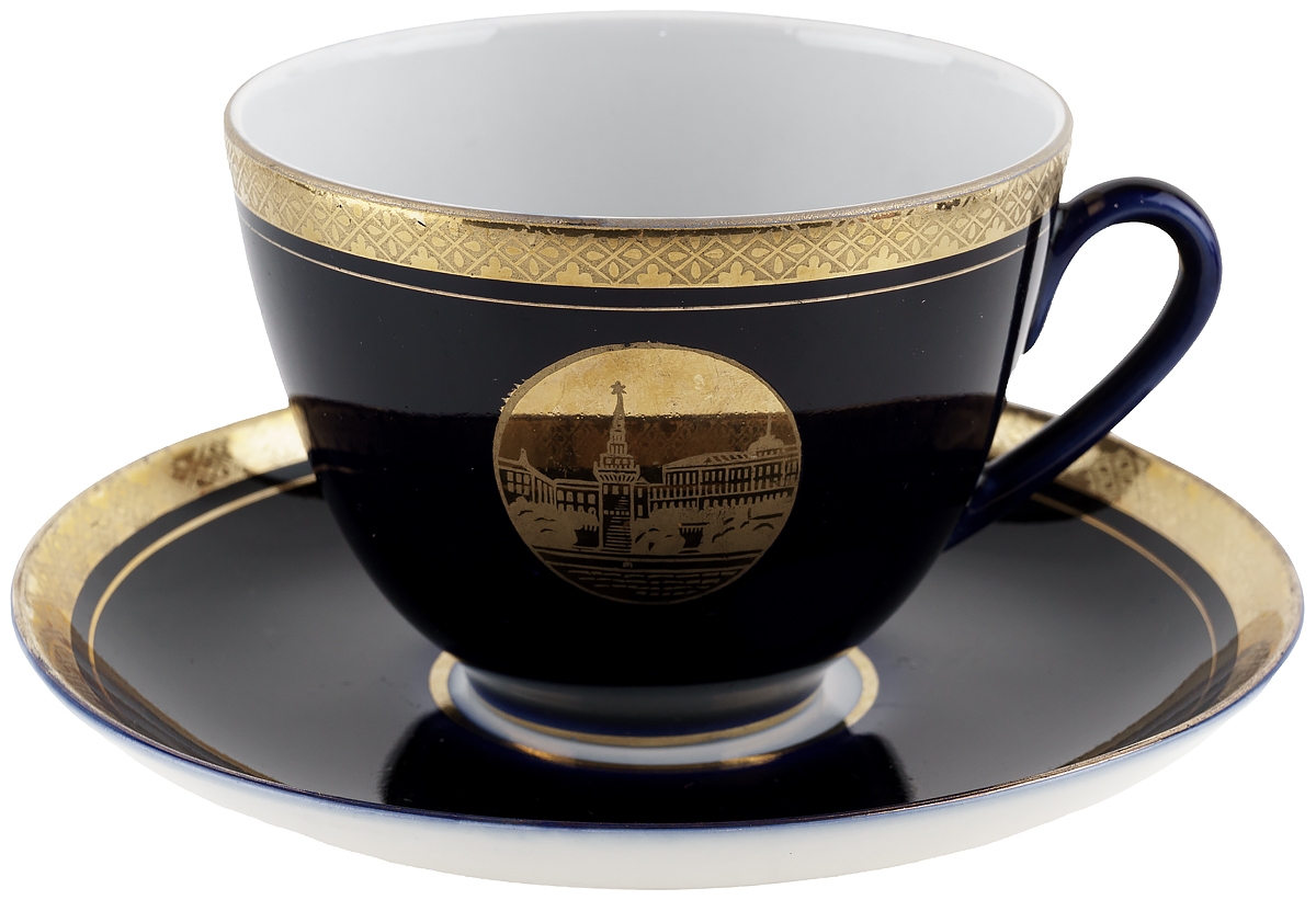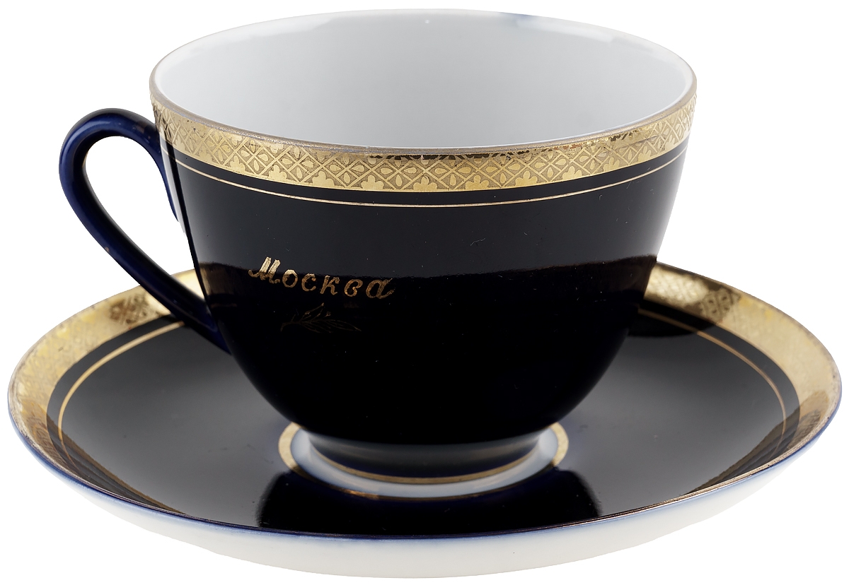 Чайная пара "Москва", Фарфор, кобаль, винтаж, ЛФЗ, СССР, вторая половина 20 века