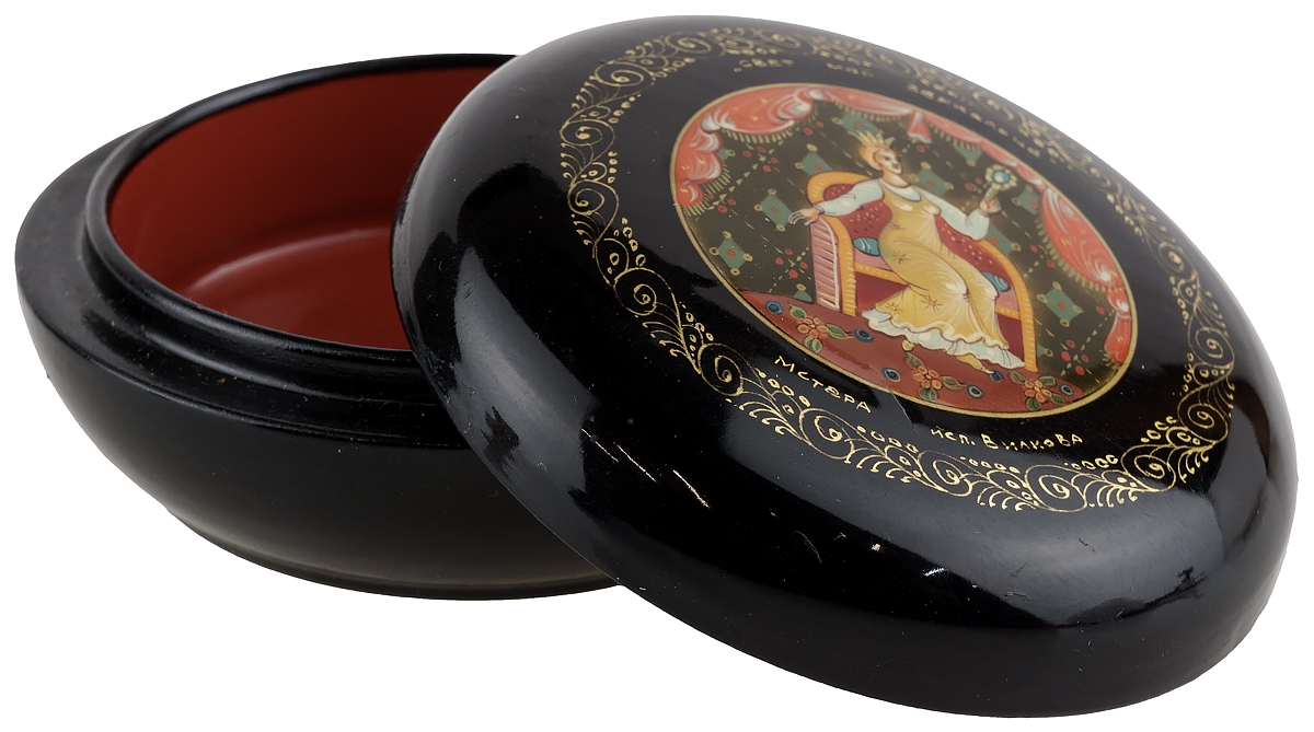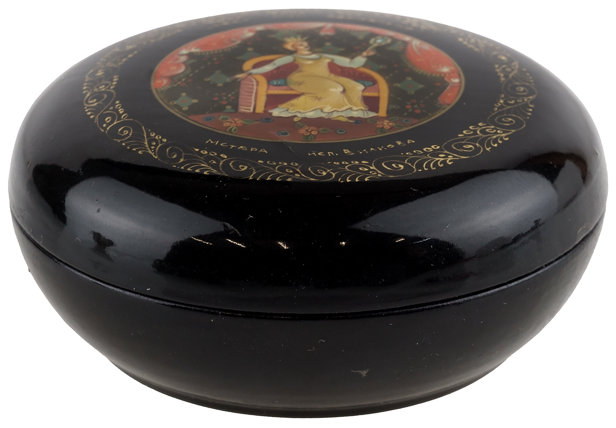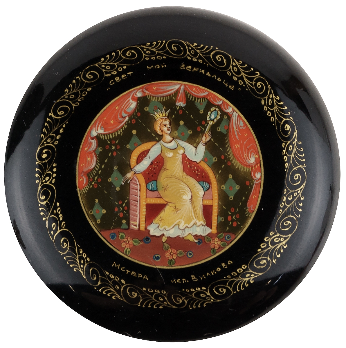 Шкатулка миниатюрная лаковая "Свет мой зеркальце", папье-маше, винтаж, Мстера, Россия, конец 20 века