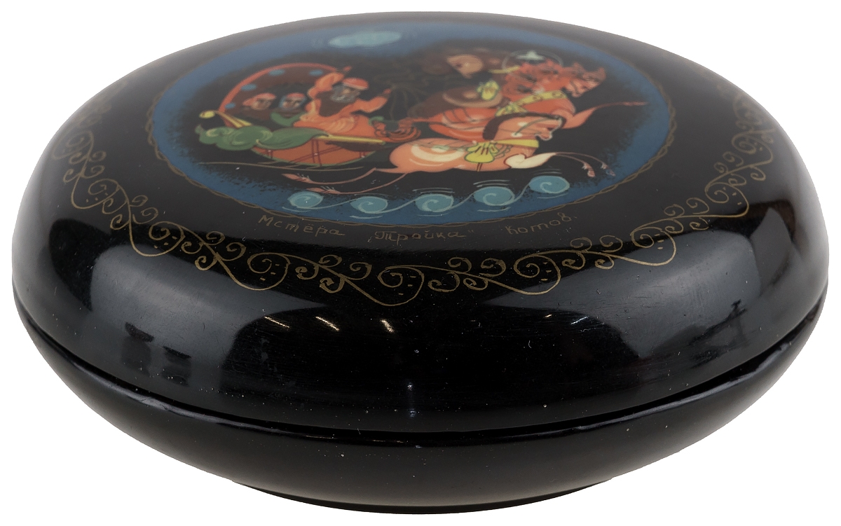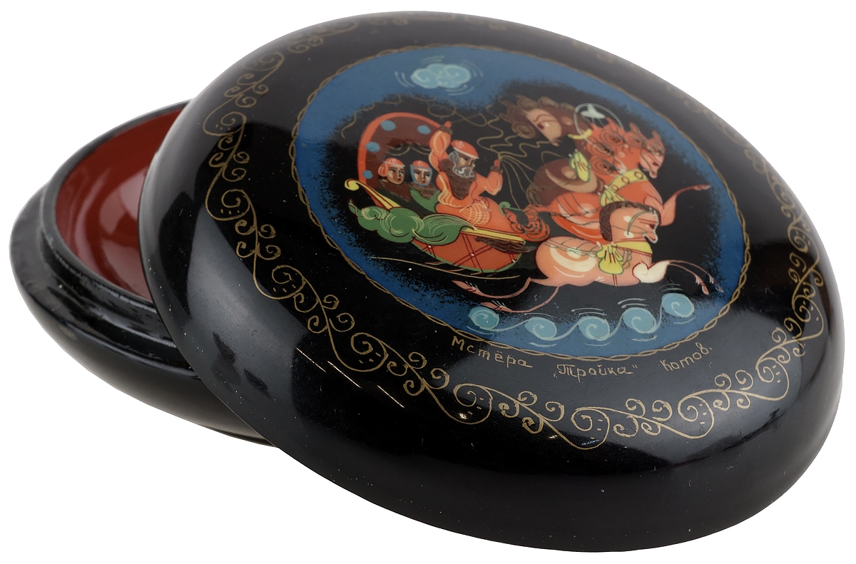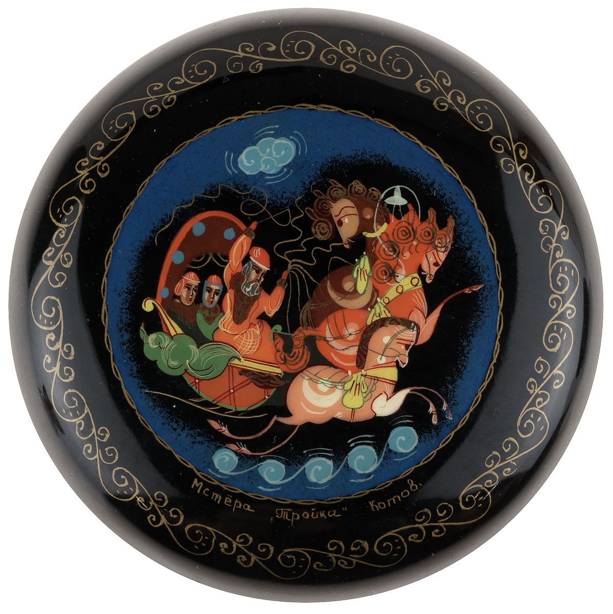 Шкатулка лаковая "Тройка", папье-маше, винтаж, Мстера, Россия, конец 20 века