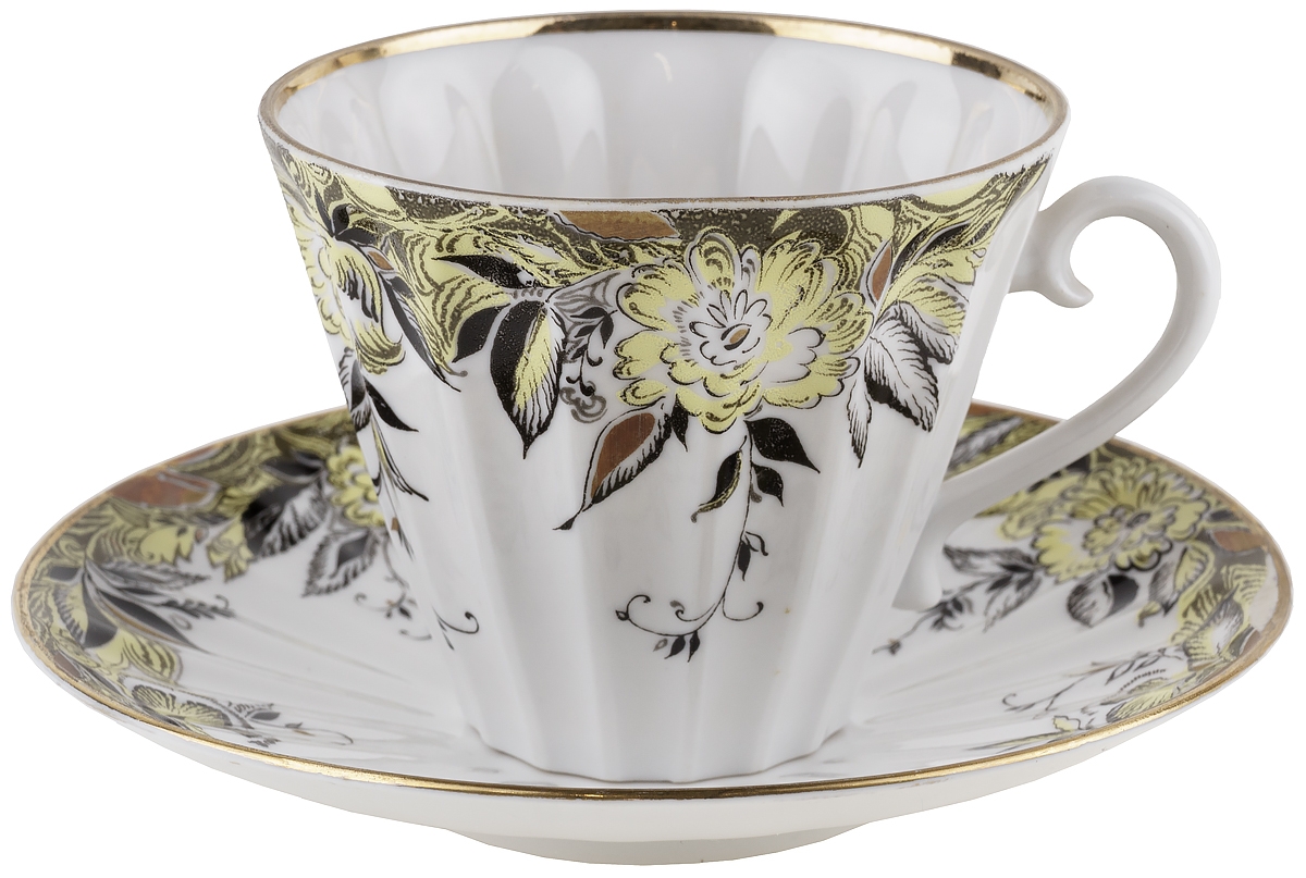 Чайная пара "Осень". Фарфор. ЛФЗ, СССР, вторая половина 20 века (нюанс)