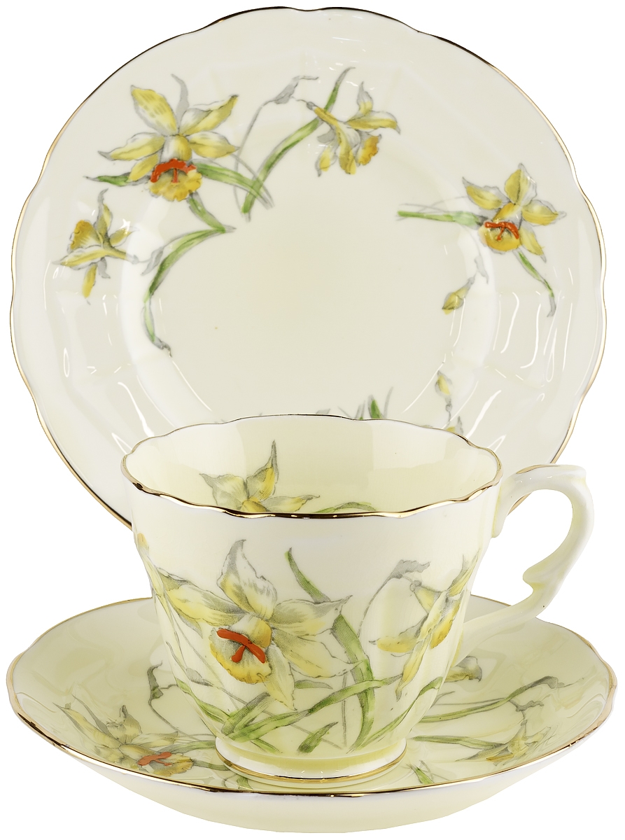 Чайное трио антикварное "Желтый нарцисс". Фарфор Crown Staffordshire, Великобритания, 1940-е гг. (нюанс)