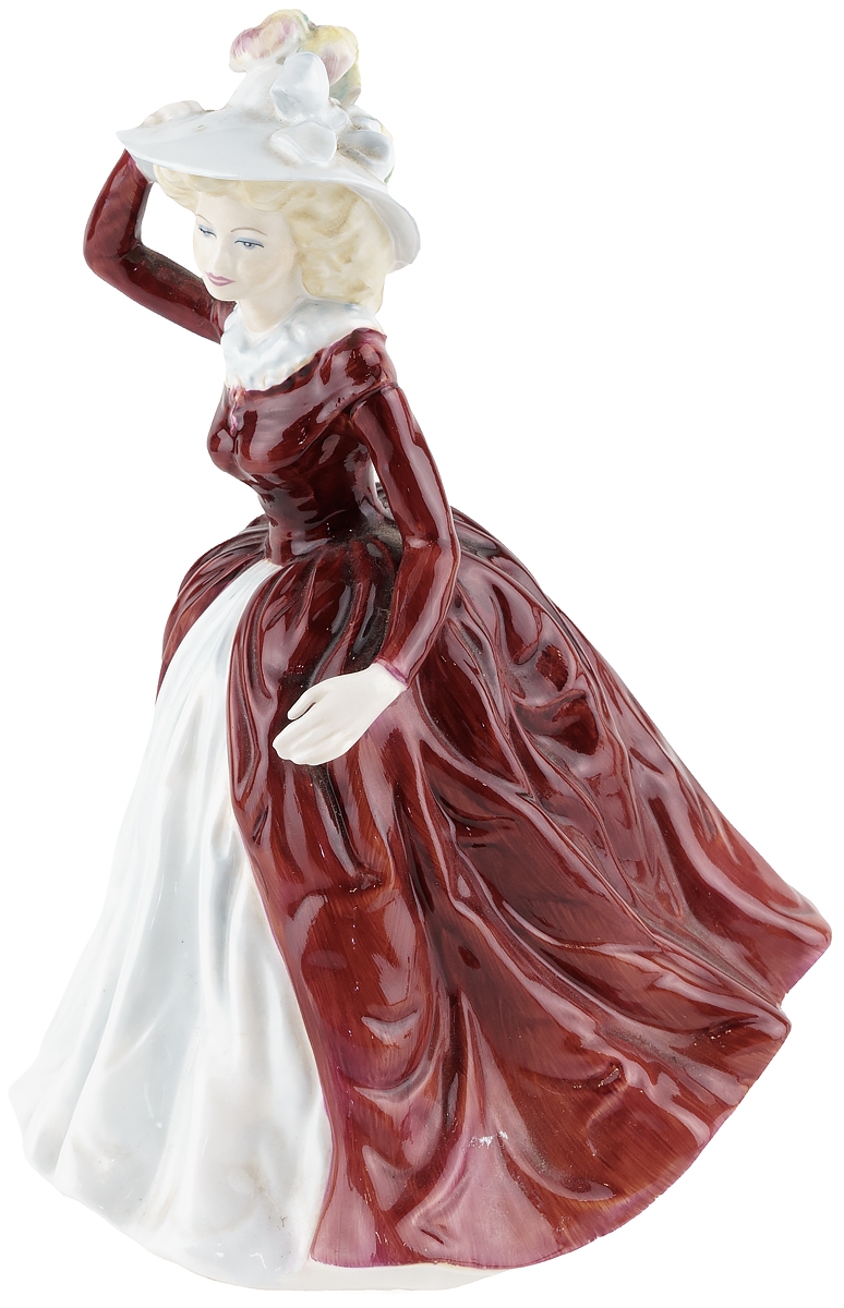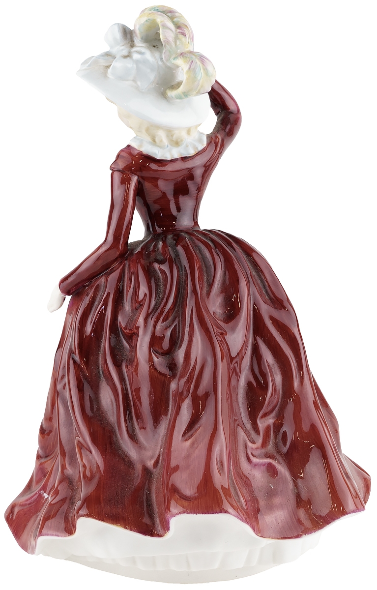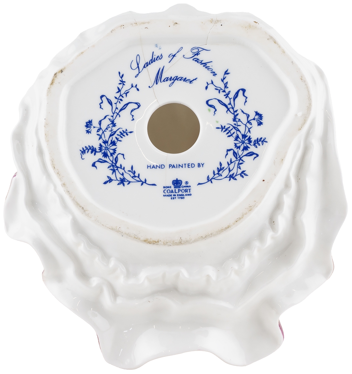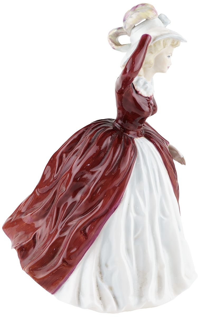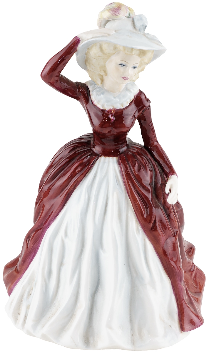 Статуэтка винтажная "Маргарет", девушка в красном платье. Высота 21 см. Английский фарфор. Coalport, Великобритания, конец 20 века (трещина)