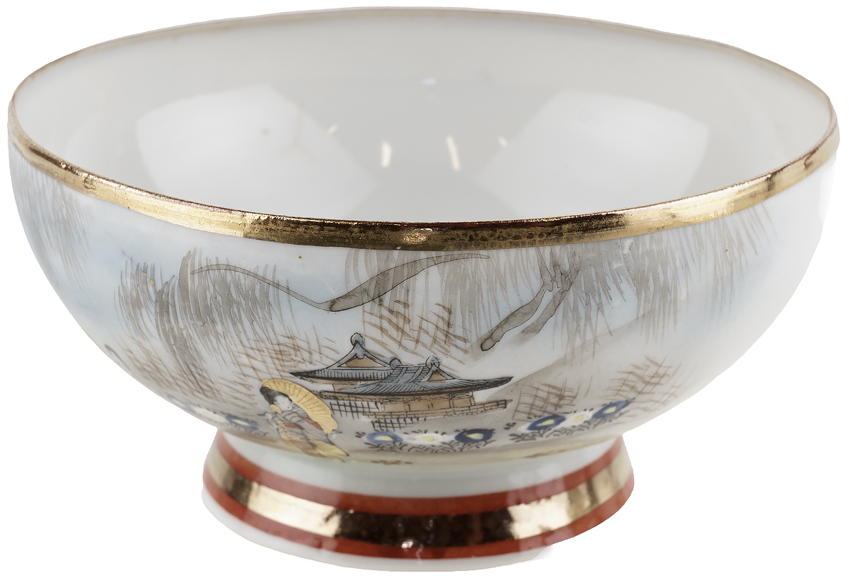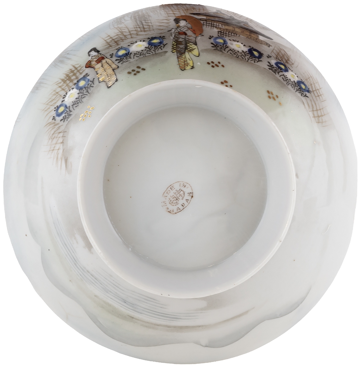 Конфетница, сахарница антикварная "Прогулка по саду". Фарфор, ручная роспись. Япония, середина 20 века