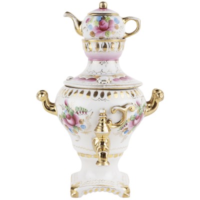 Знаменитая шкатулка «Самовар» стала визитной карточкой всего гжельского промысла. Колоритная форма, нарядность росписи, декорация золотом: все это сразу бросается в глаза и вызывает желание поставить самовар на видное место. Шкатулка станет великолепным подарком для настоящего ценителя русского народного творчества.