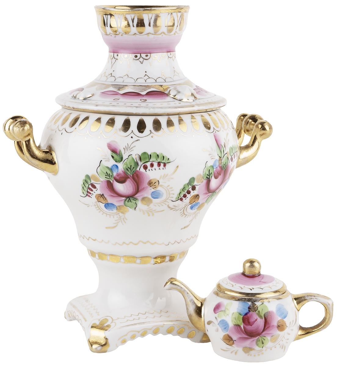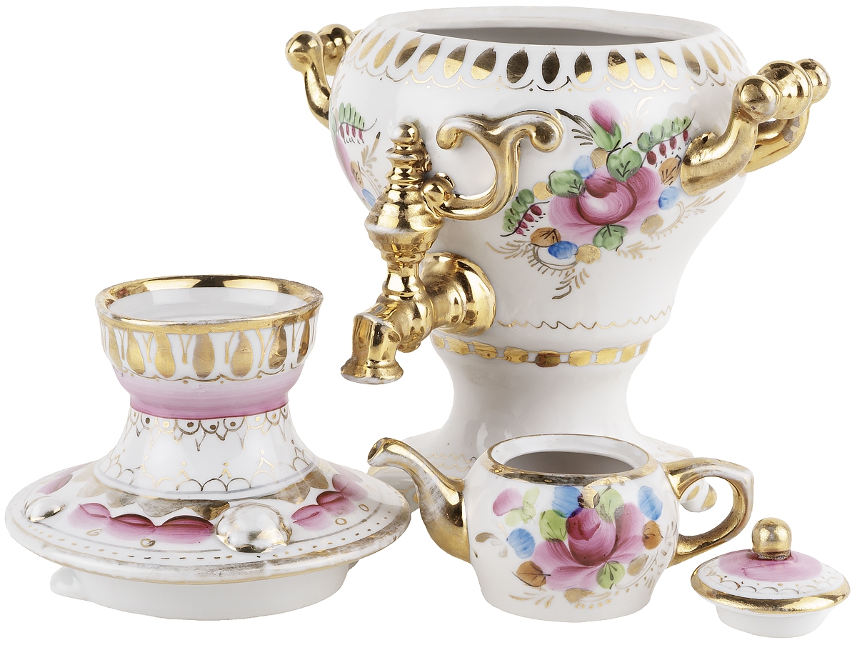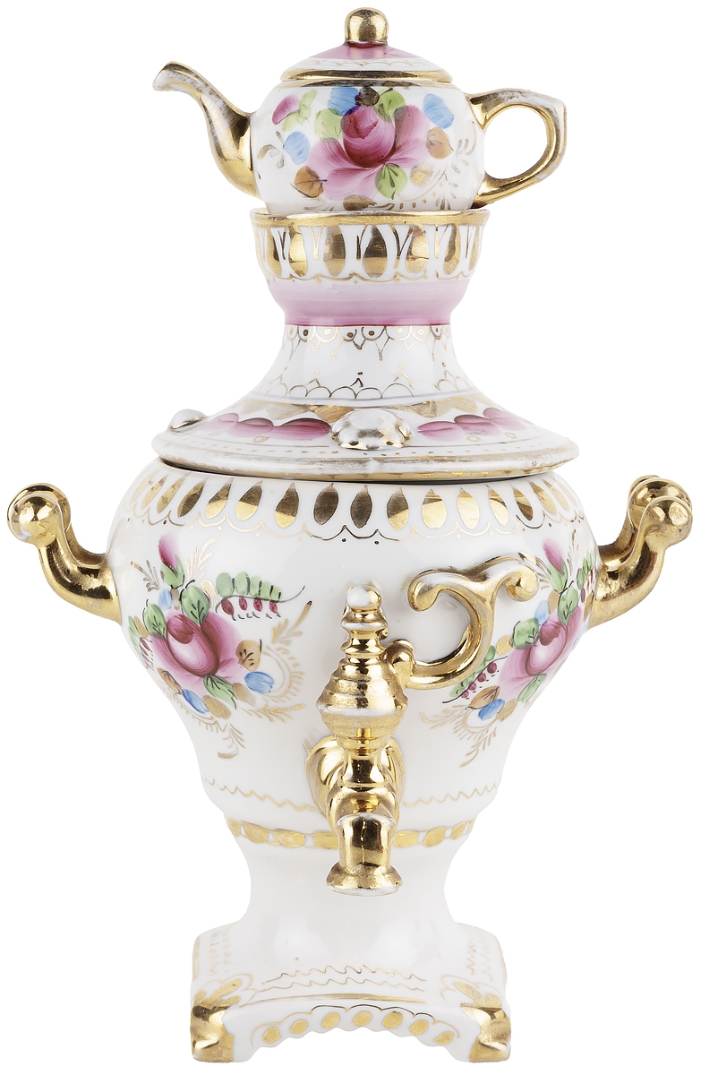 Самовар декоративный с чайничком, шкатулка, фарфор, Гжель, СССР, 1986-1991 гг. (потертости)