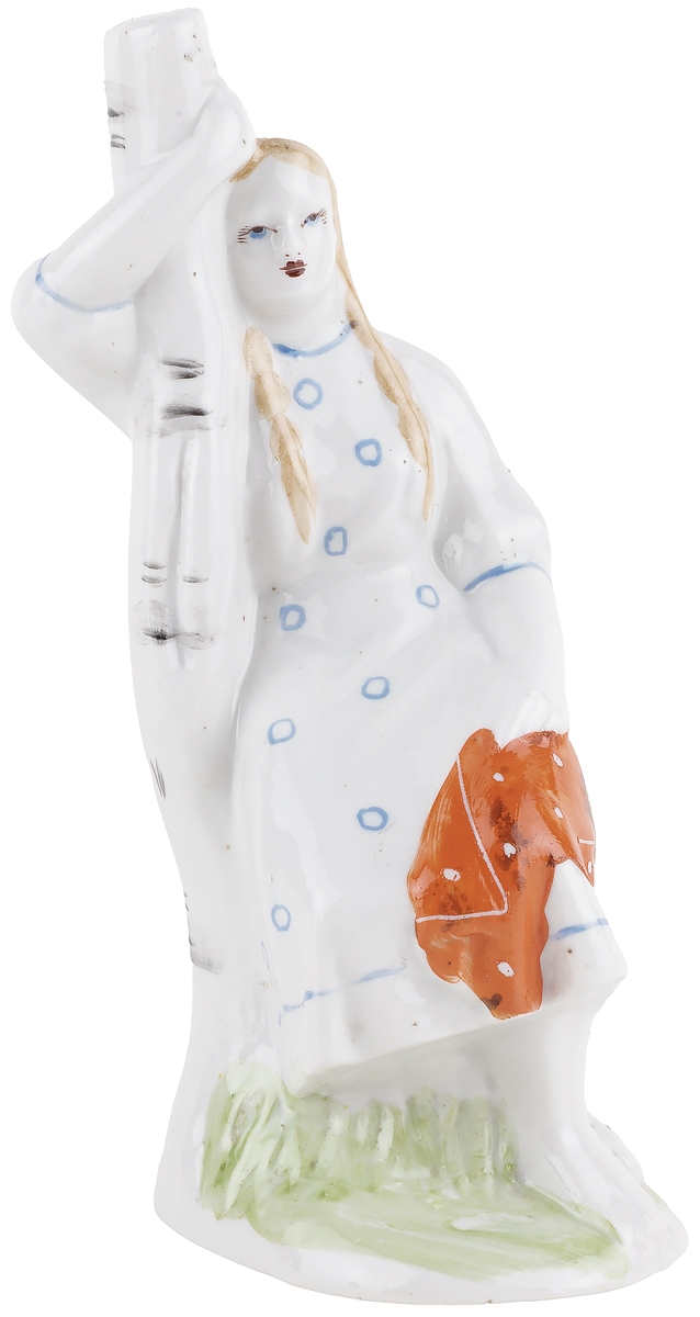 Статуэтка фарфоровая "Девушка у березы", высота 17 см, винтаж, Бронницы, СССР, 1960-1980 гг