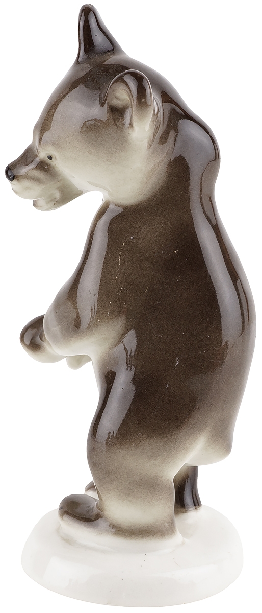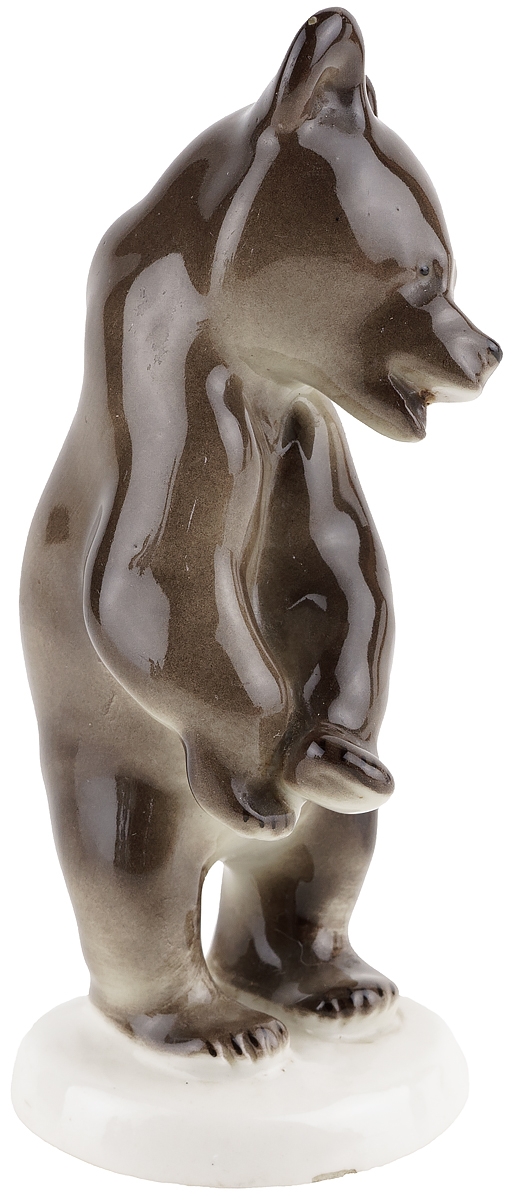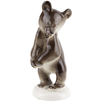 Статуэтка фарфоровая "Медвежонок бурый стоящий", винтаж, высота 14,5 см, ЛФЗ, СССР, вторая половина 20 века
