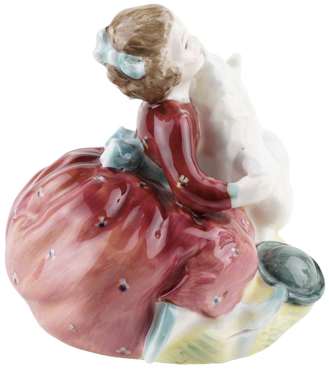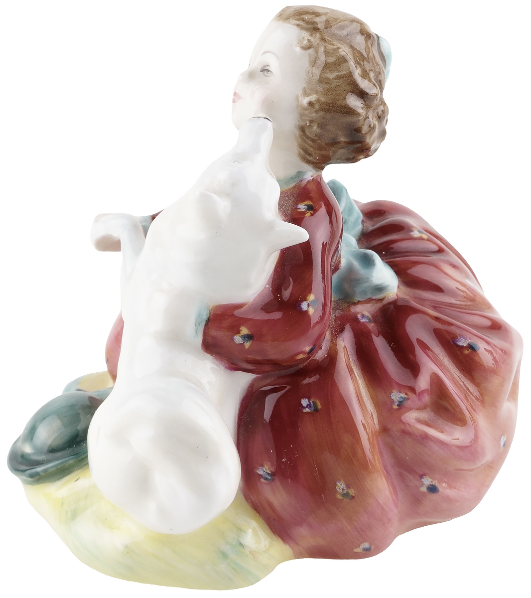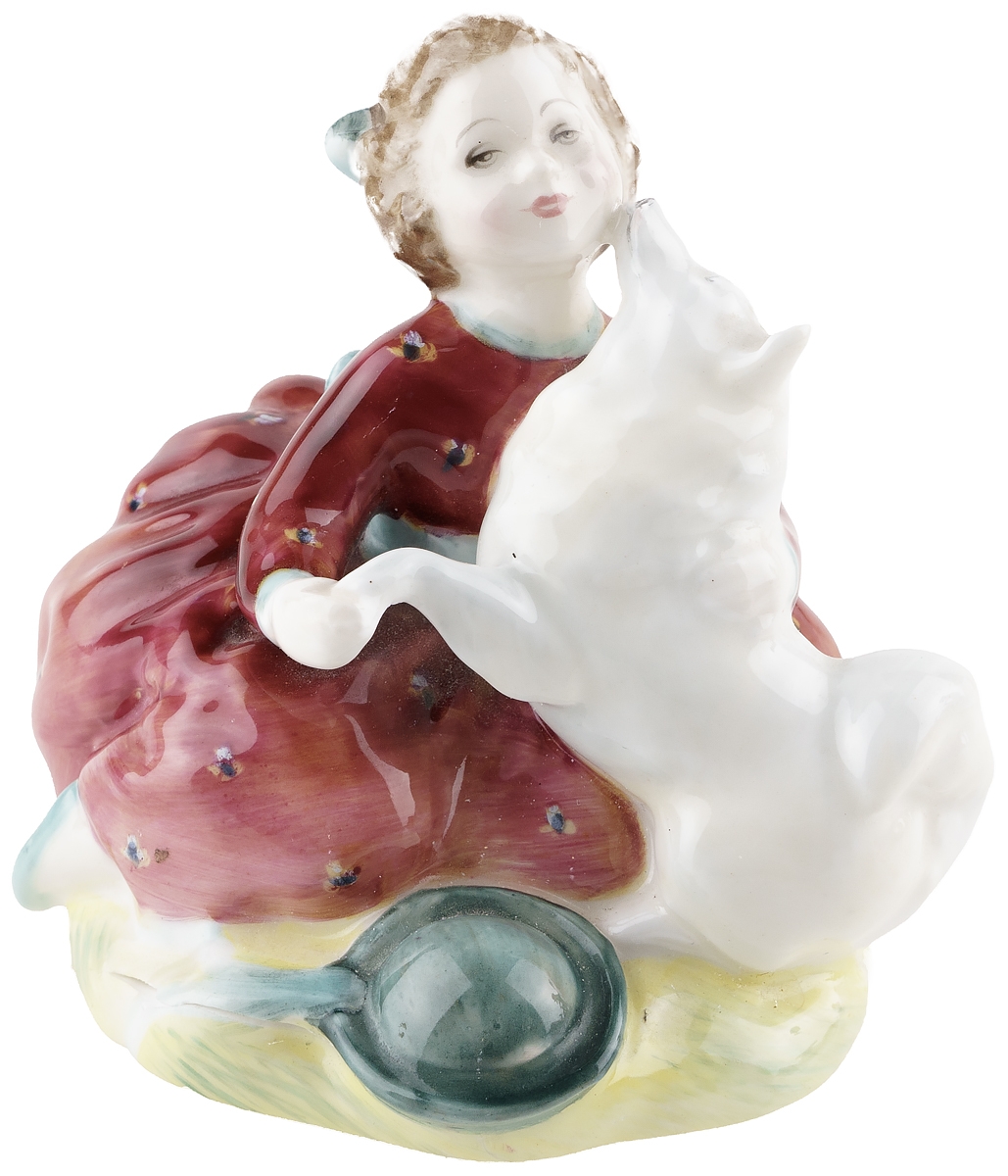 Статуэтка "Снова дома", девочка с собакой. Высота 8 см, костяной фарфор Royal Doulton, Великобритания, винтаж, 1992 г. (трещина)