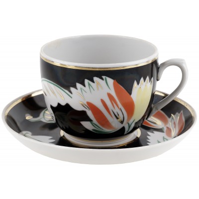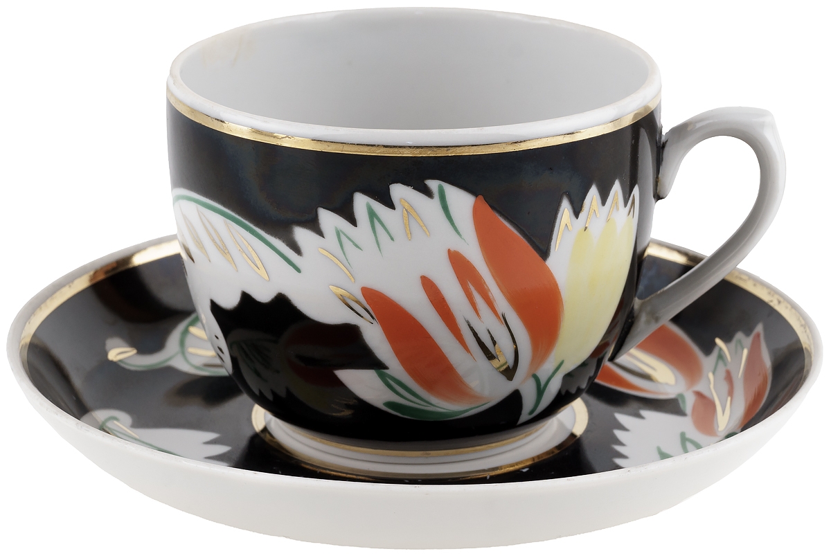 Чайная пара "Дивный цветок", Фарфор, винтаж, Вербилки, СССР, 1954-1965 гг.(с нюансами)