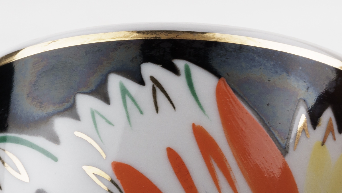 - Повреждения: скол, потертость покрытия, потертость золочения