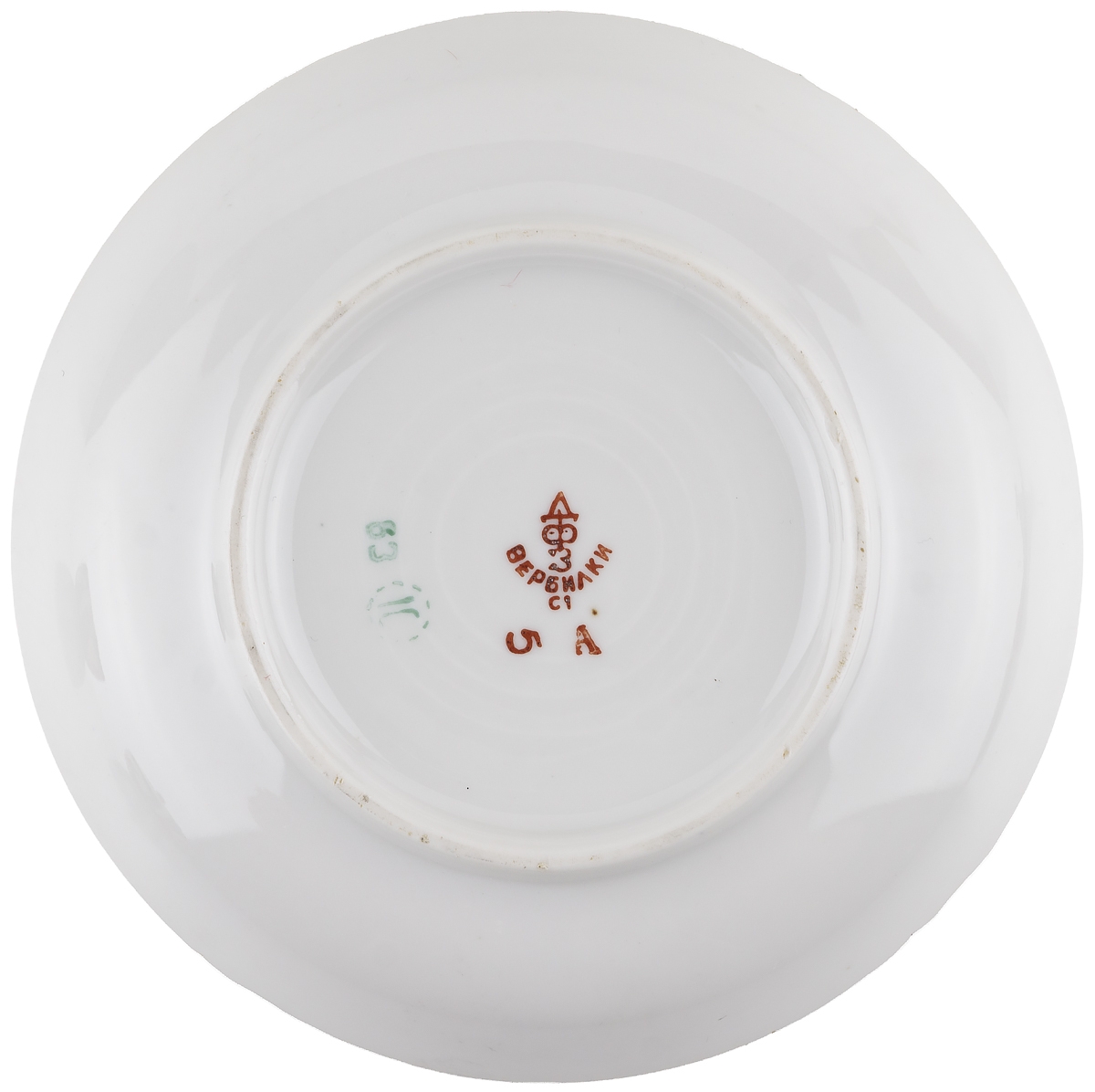 Маркировка: надглазурное клеймо Дмитровского фарфорового завода (Вербилки).