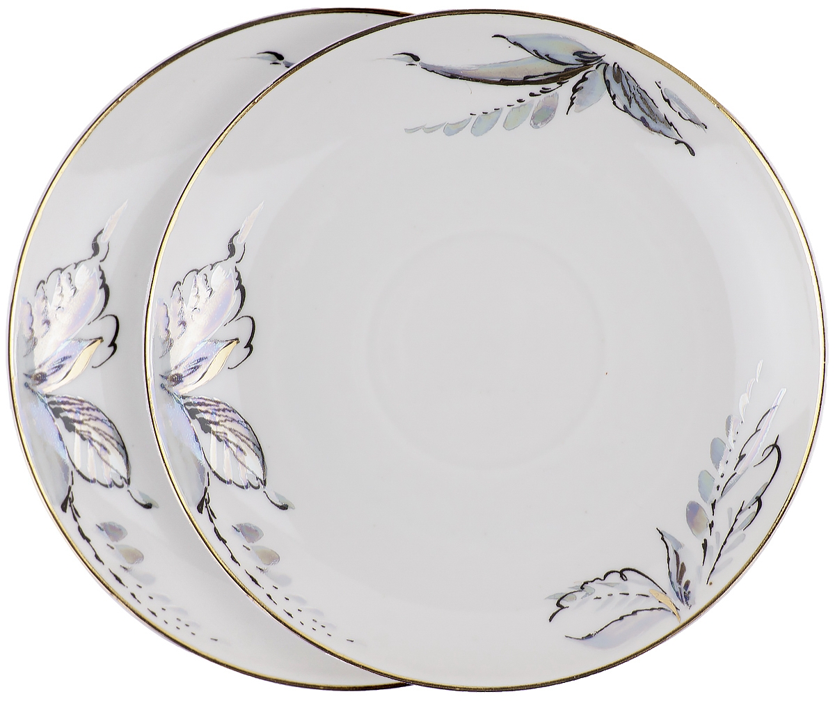 Пара блюдец "Жемчужные", фарфор, винтаж, ЛФЗ, СССР, вторая половина 20 века