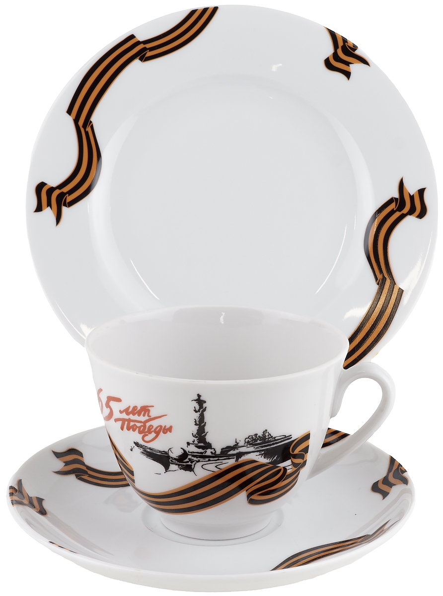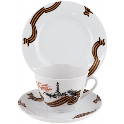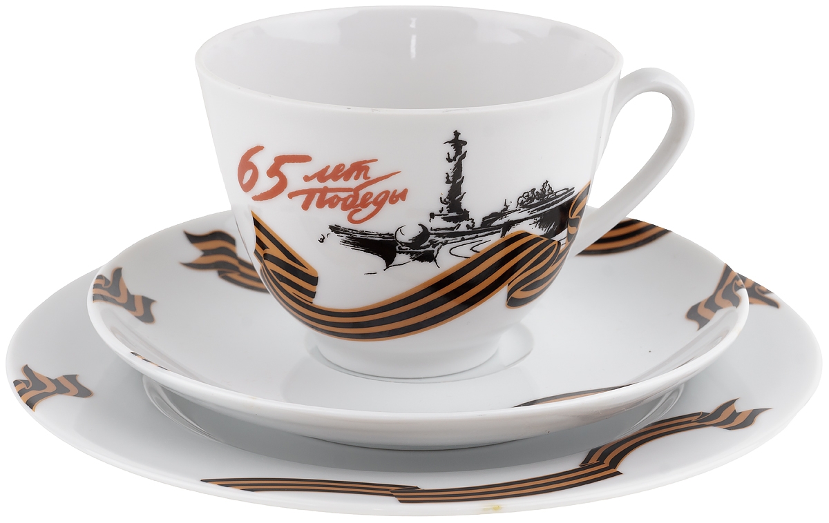 Чайное трио "65 лет Победы", Фарфор, винтаж, ИФЗ, Россия, 2010 год