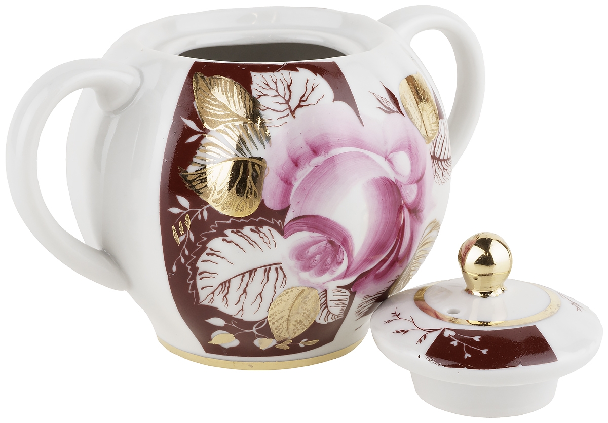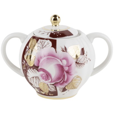 Сахарница "Роза в вечернем саду", Фарфор, винтаж, ЛФЗ, СССР, вторая половина 20 века