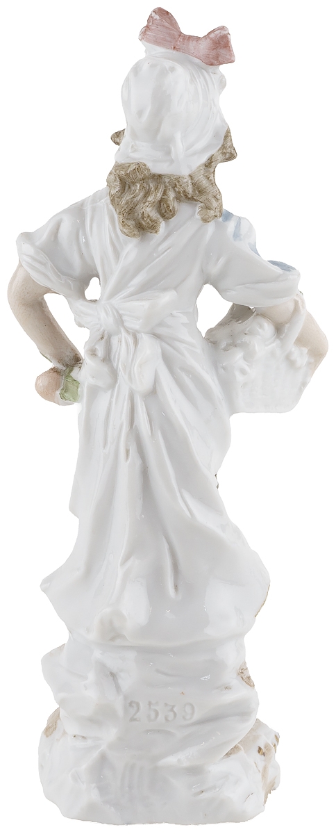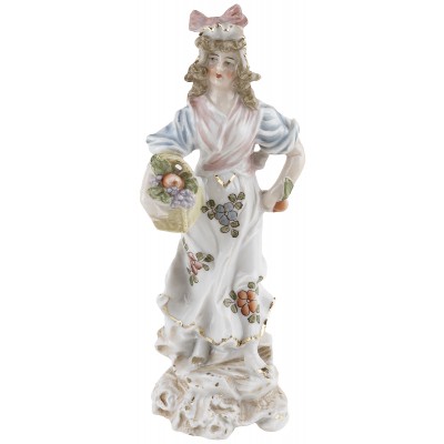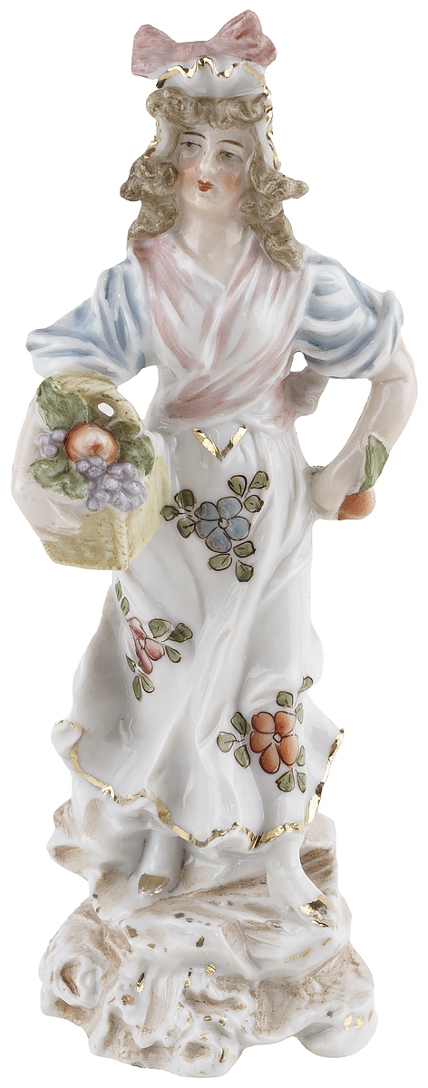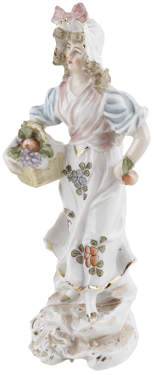 Статуэтка антикварная "Девушка с корзиной фруктов". Высота 15 см, фарфор, Великобритания, конец 19 века