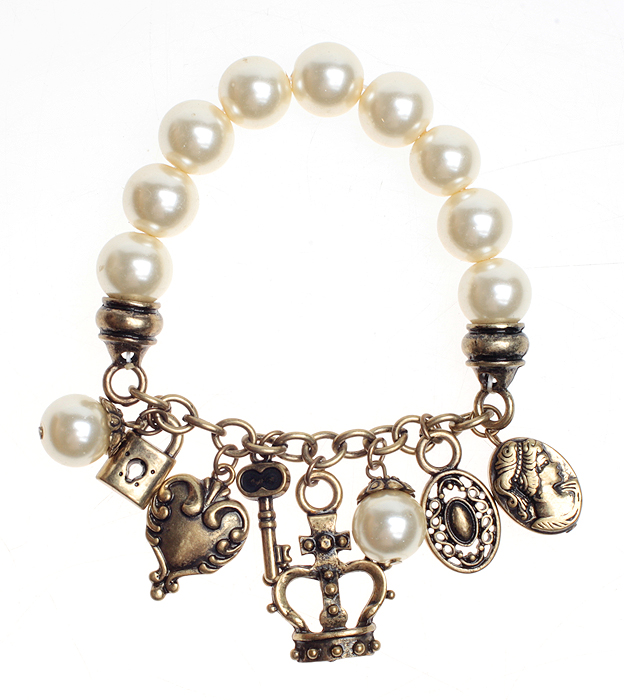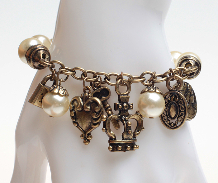 Браслет "Королевский". Искусственный жемчуг, бижутерный сплав "старое золото". Гонконг, 2012 год