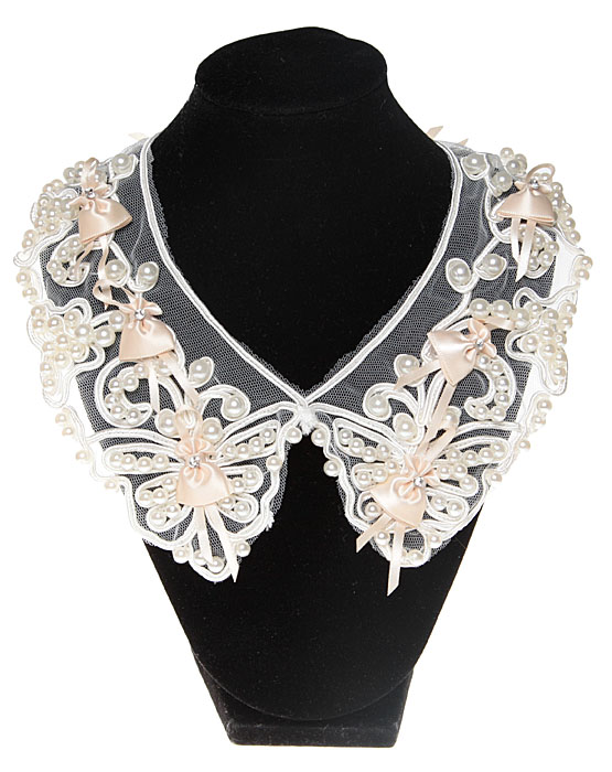 Ожерелье - воротник "Сладкая жизнь". Кружево, искусственный жемчуг, стразы. Гонконг, 2010