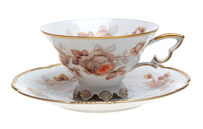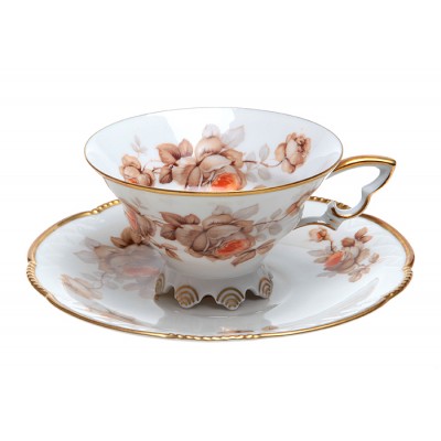 Чайная пара "Розы Баварии". Фарфор, роспись, золочение. Mitterteich, Германия (Бавария), 1940-е гг.