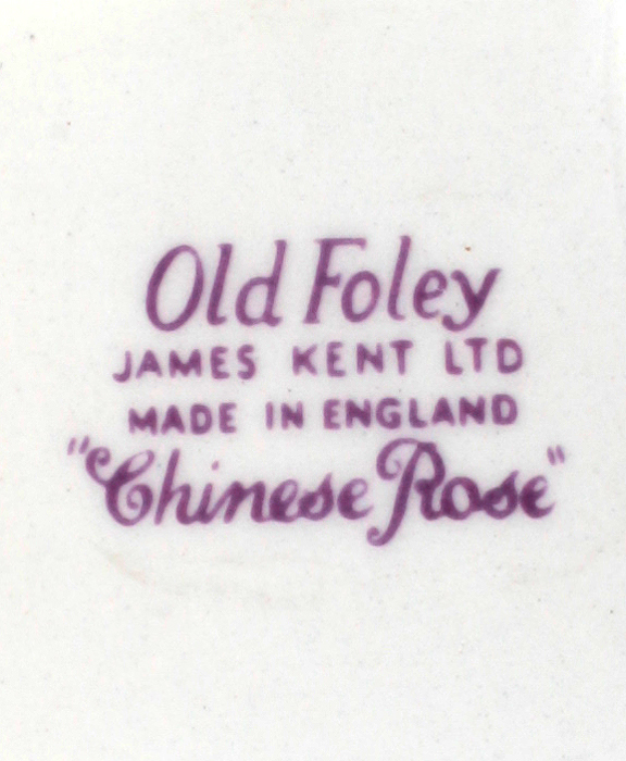 Маркировка: подглазурное клеймо фиолетового цвета "Old Foley. James Kent Ltd. Made in England".