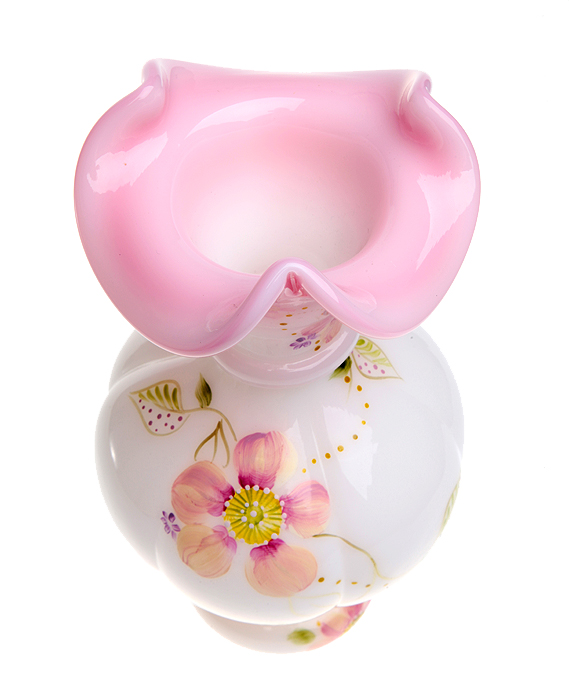 Fenton. Ваза "Весна". "Молочное" стекло, цветные эмали, ручная роспись. Высота 21 см. Fenton, США, 2011 год