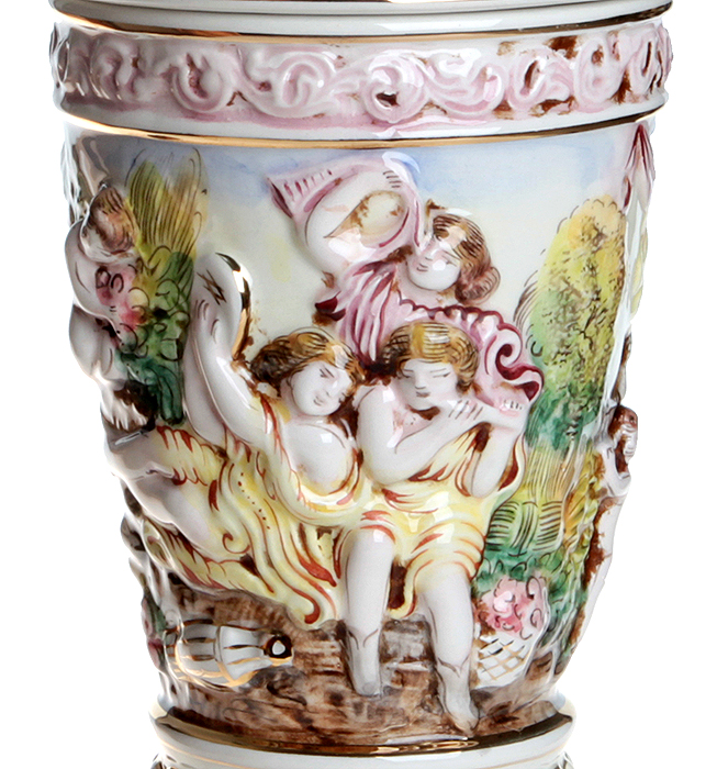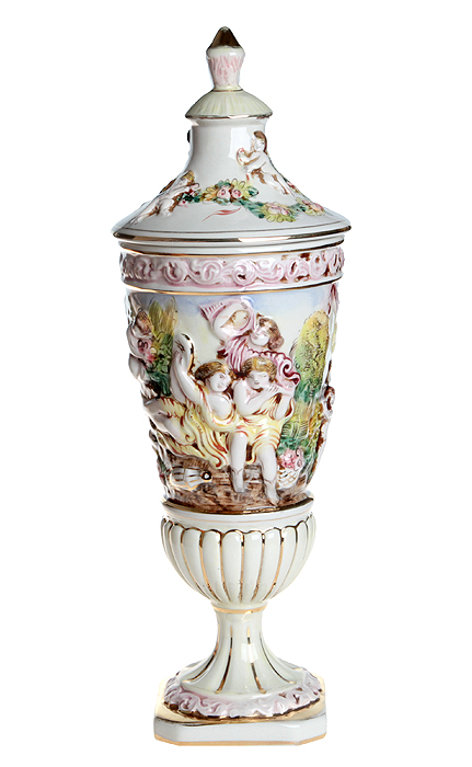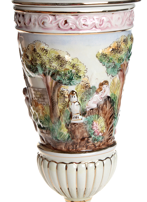 Удивительно характерная ваза с крышкой знаменитой неополитанской фабрики фарфора Capodimonte!