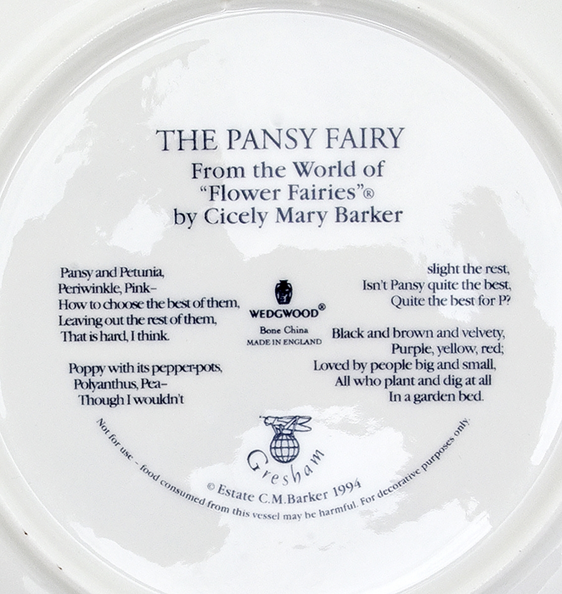 Сесиль Мари Бейкер "Фея Анютиных глазок", декоративная тарелка. Фарфор, деколь. Wedgwood, Великобритания, 1994 год