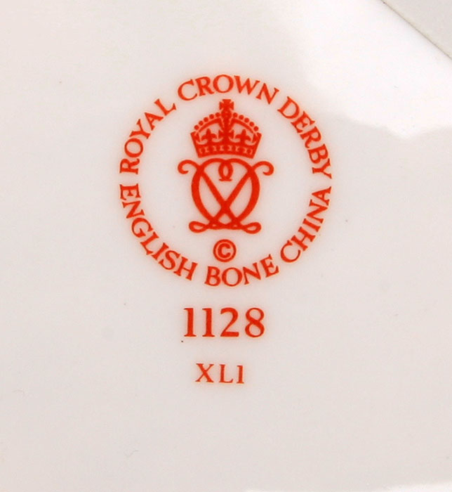 Маркировка: красные надглазурные клейма "Royal Crown Derby. English bone china 1128".