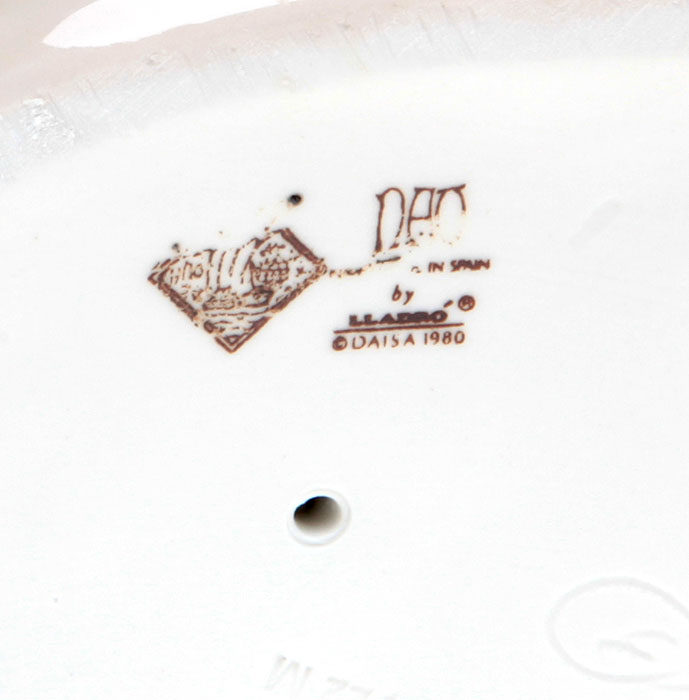 Маркировка: надглазурное клеймо коричневого цвета "Nao. Hand Made in Spain by Lladro. Daisa 1980"
